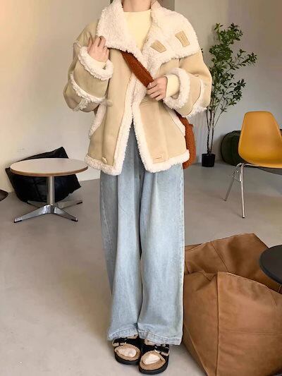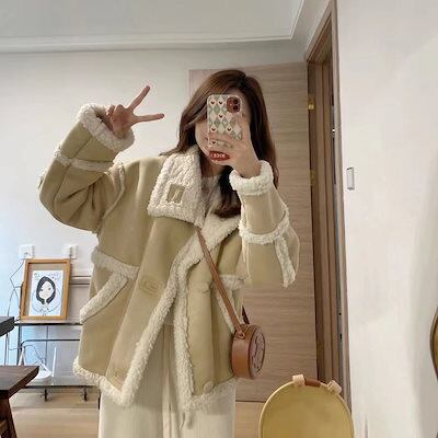 人気ボアアウター 冬人気 厚手 毛皮アウター裹起毛 韓国 気質もこもこコート レディース 防寒 暖かいファーアウタースウェット体型カバー百掛け 裹起毛ジャケット フリースで決まり!