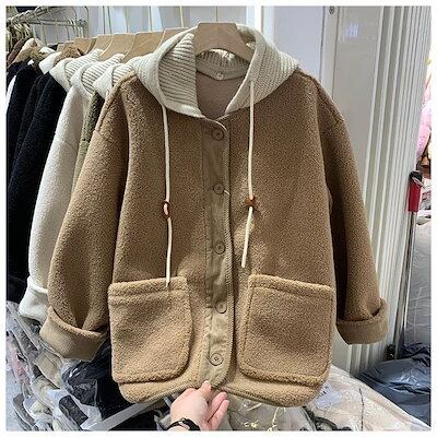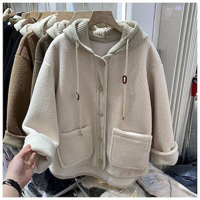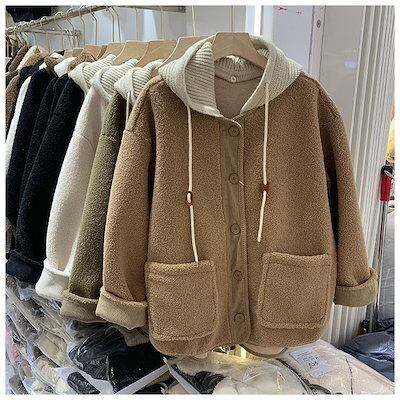 冬人気 厚手 超保温 毛皮アウター裹起毛ファッション韓国 気質もこもこロングコート レディース 防寒 暖かいファーアウターゆったりスウェット体型カバーフード付き裹起毛ジャケット フリースで決まり!