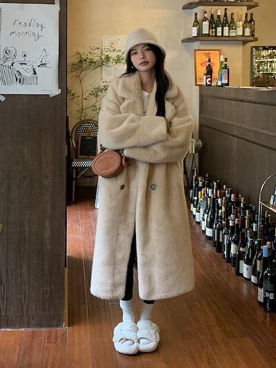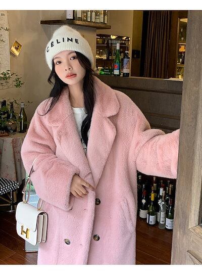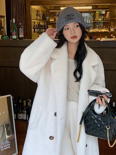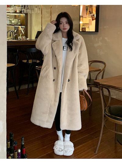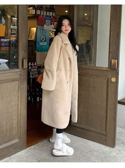 超保温!超モフモフ!コート レディース 冬 ファーコート 皮毛一体 厚手 華やか 暖かい 体型カバー ロングコート 毛皮コート フェイクミンク 韓国ファッション アウター