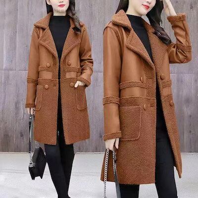ダウンジャケット アウター セミロング 裏起毛 厚手 両面着用 ゆったり レザーコート アウター レディース ジャケット