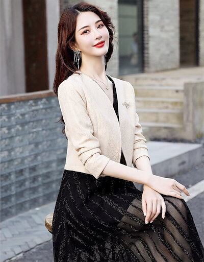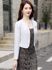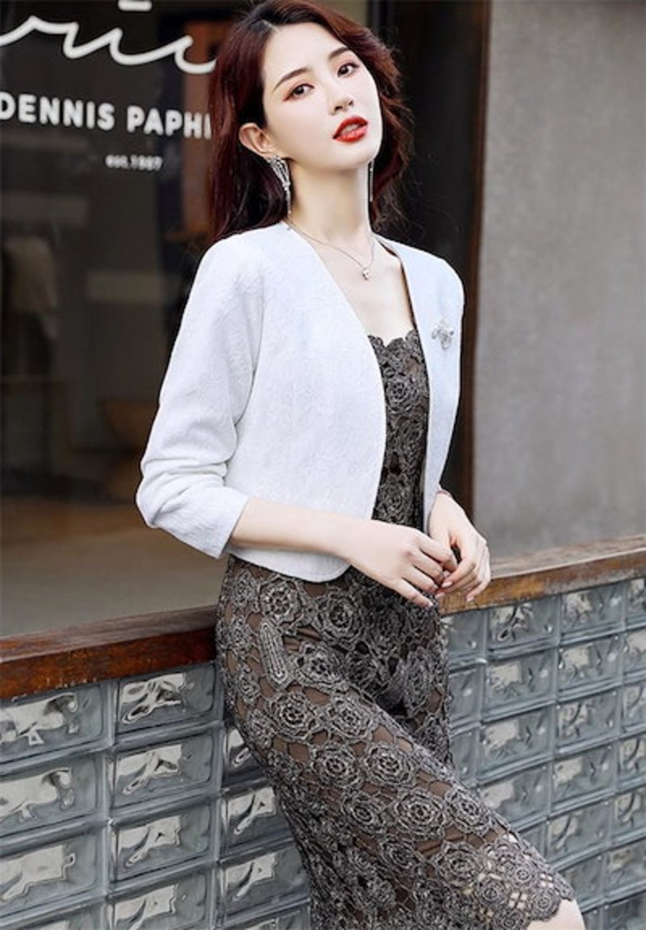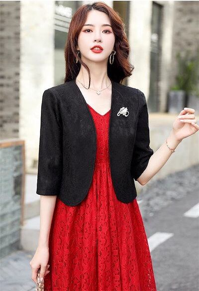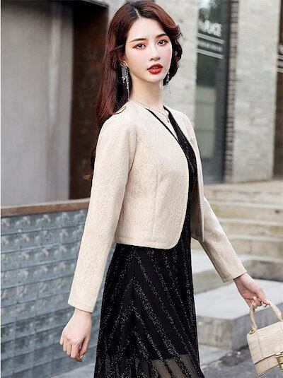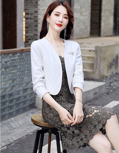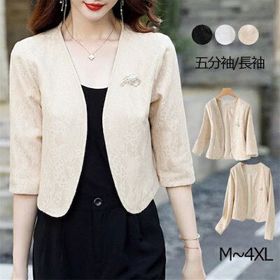 テーラードジャケット レディース 春 秋 夏 ジャケット コート アウター 長袖 五分袖 ショートジャケット トップス ボレロ 羽織 ノーカラー ミドル丈 お呼ばれ ミセス 上品 大人 二次会 レース