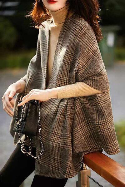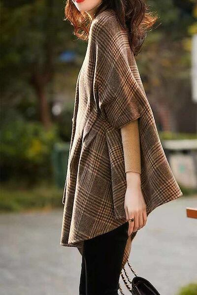 カーディガン レディース ドルマン 秋 冬 ポンチョ コート マント アウター 羽織り トップス ケープ 秋冬 チュニック ポンチョコート バイカラー カーデガン 半袖 ライトアウター 羽織もの 洗え