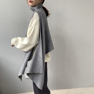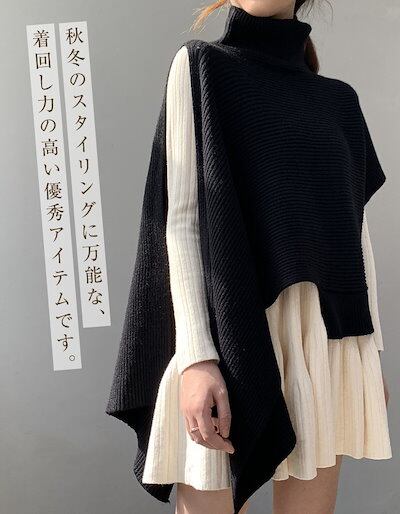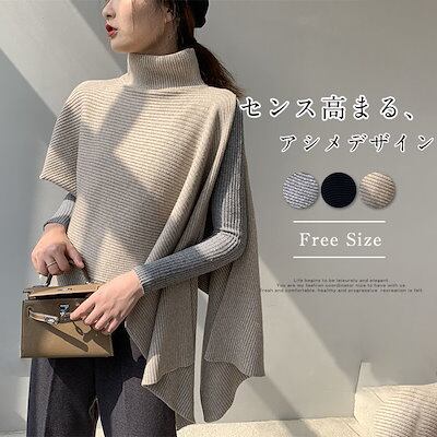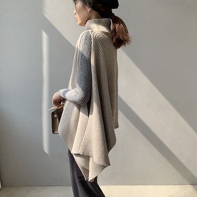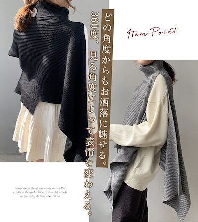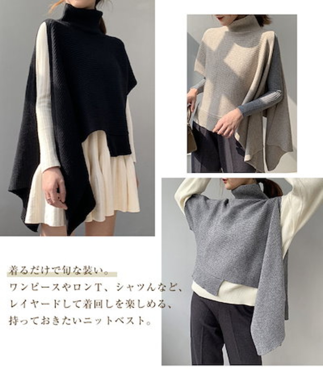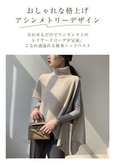 アシメニットベスト ベスト レディース ニット トップス ノースリーブ ハイネック アシンメトリー アシメ フレア セーター 重ね着 レイヤード モード とらみ 半袖 デザイン カジュアル おしゃれ