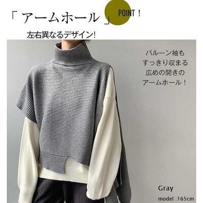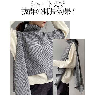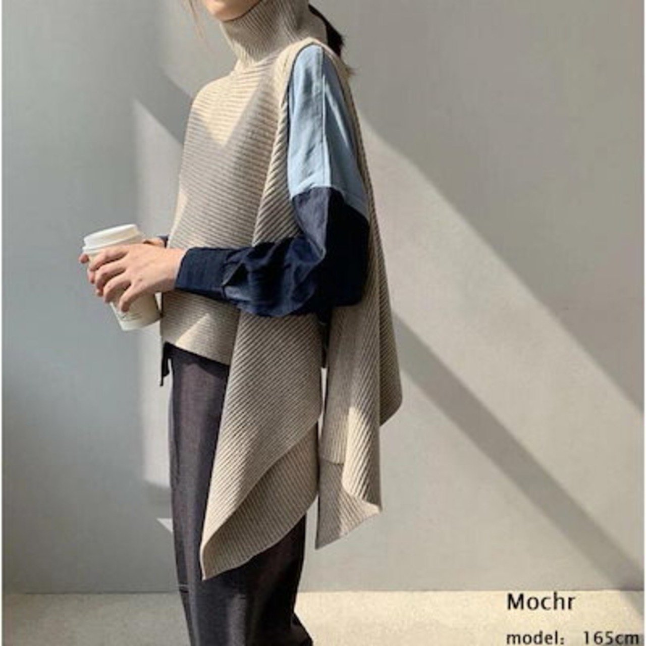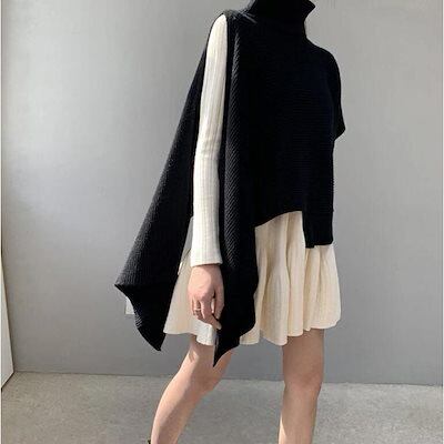 ニットベスト レディース ベスト 半袖 アシンメトリー 変形 アシメ ニット セーター タートルネック チョッキ 秋冬 ケープ プルオーバー 大きいサイズ