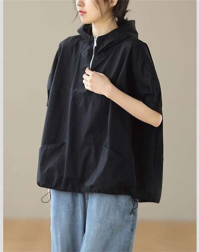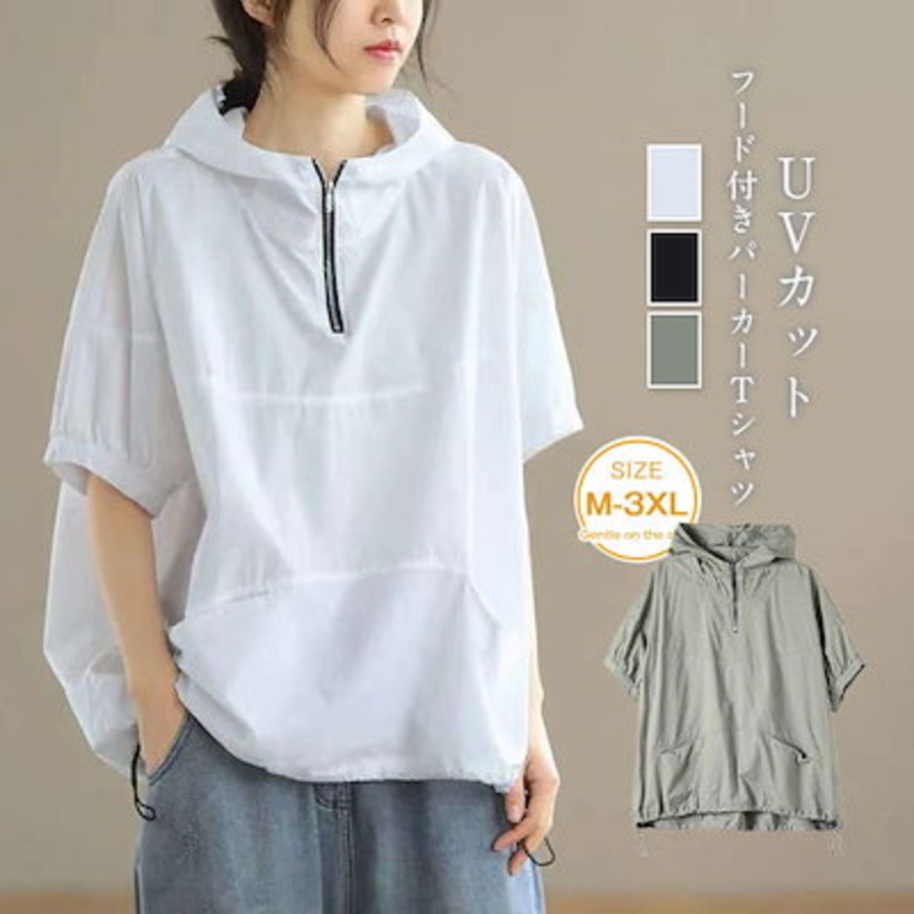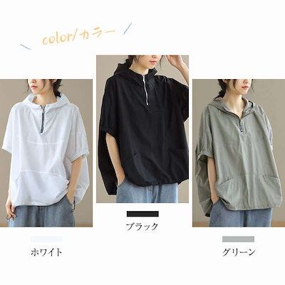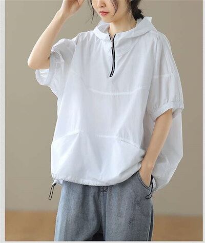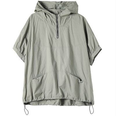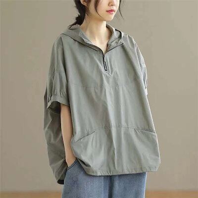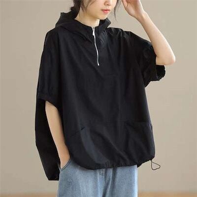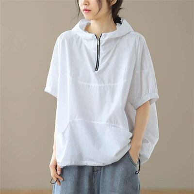 パーカー レディース 半袖 tシャツ 夏 ゆったり ビッグシルエット 薄手 綿 無地 スウェットフードパーカー トップス 半袖パーカー トレーナー おしゃれ フード付き プルオーバー 大きいサイズ 体