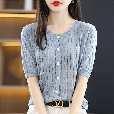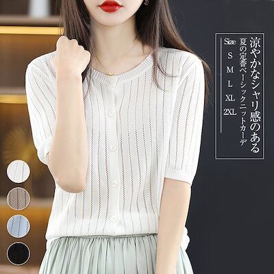 カーディガン UVカット 接触冷感 レディース ラウンドネック 紫外線対策 薄手ニット カーディガン 冷房対策 日焼け防止 上着 半袖 おしゃれ ナチュラル 無地 トップス オフィス 通勤 春 夏 薄