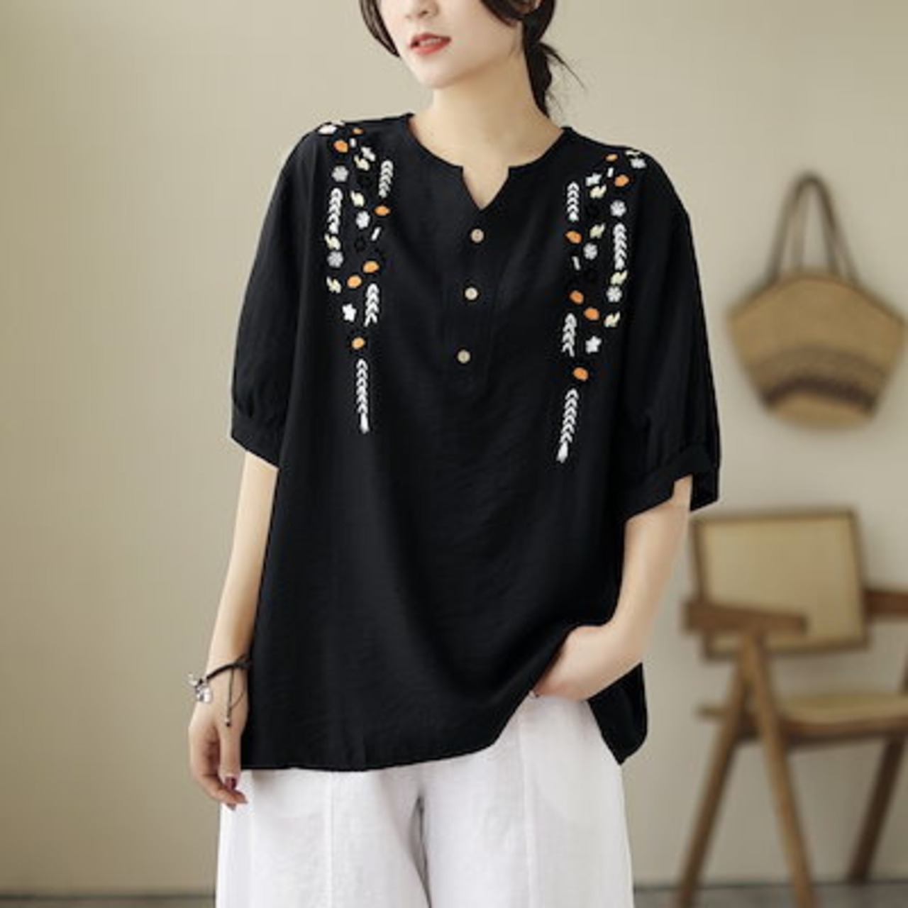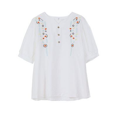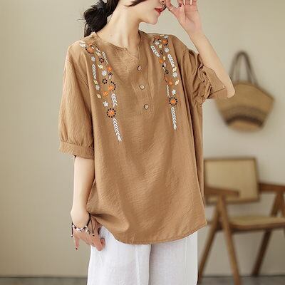 今っぽシアーシャツ使える!シフォンブラウス今っぽシアーシャツ可愛い刺繍夏服レディース大きいサイズ半袖韓国ファッション綿麻肌にやさしいトップス2023人気新作