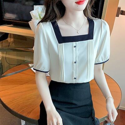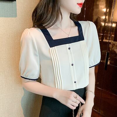 今っぽシアーシャツ使える!シフォンブラウス今っぽシアーシャツ人気可愛い半袖シャツレディース夏服サテントップス韓国ファッションシフォンシャツ