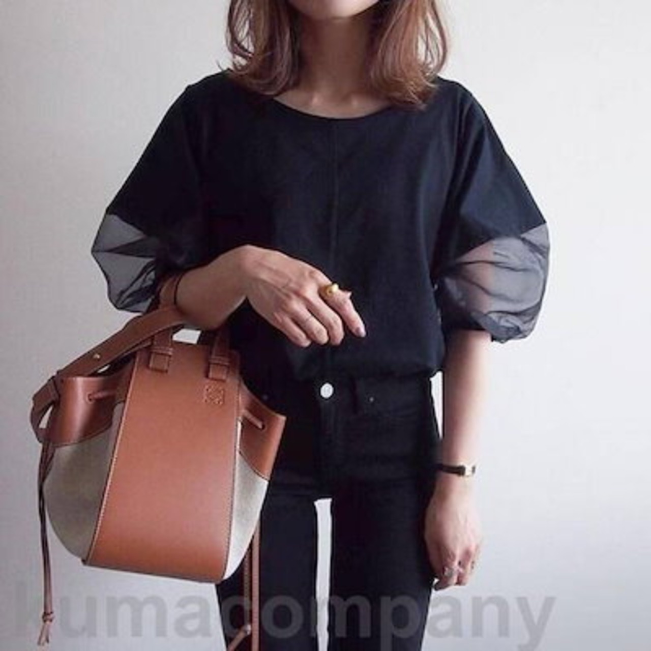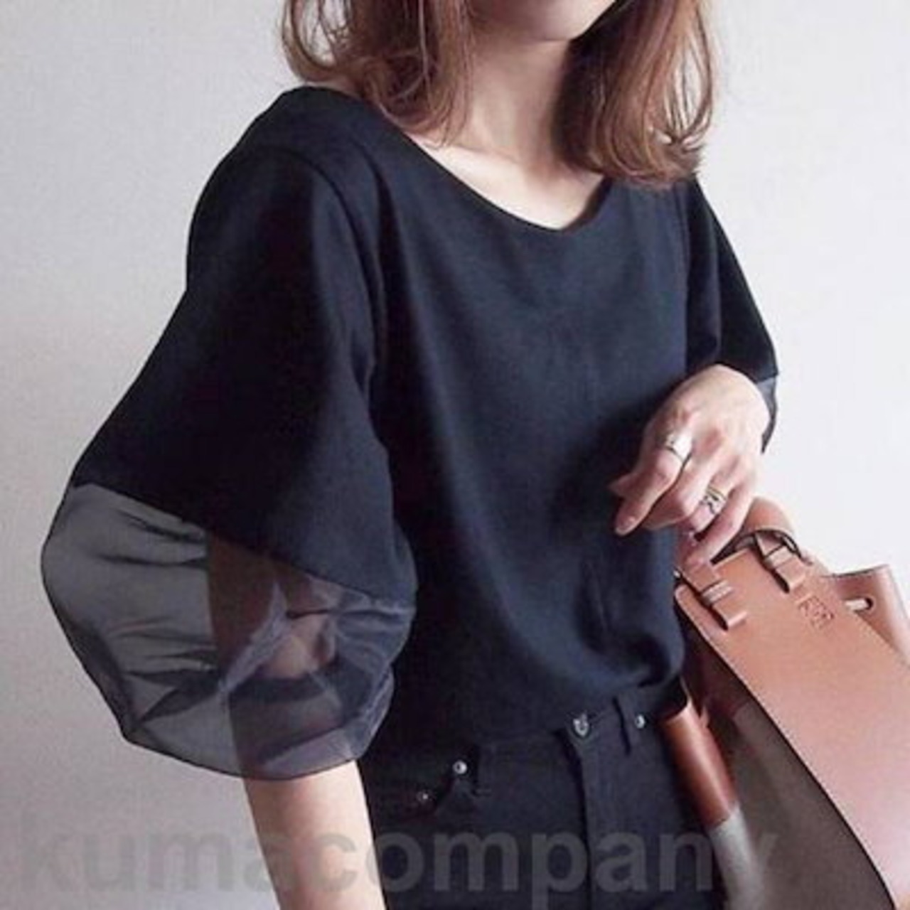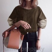 パフスリーブ トップス ブラウス シャツ プルオーバー カットソー シアー クルーネック エレガント レディース きれいめ カジュアル おしゃれ 五分袖 大人 可愛い フェミニン ナチュラル