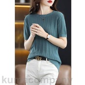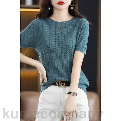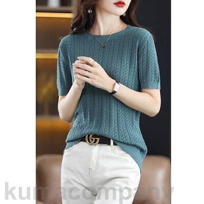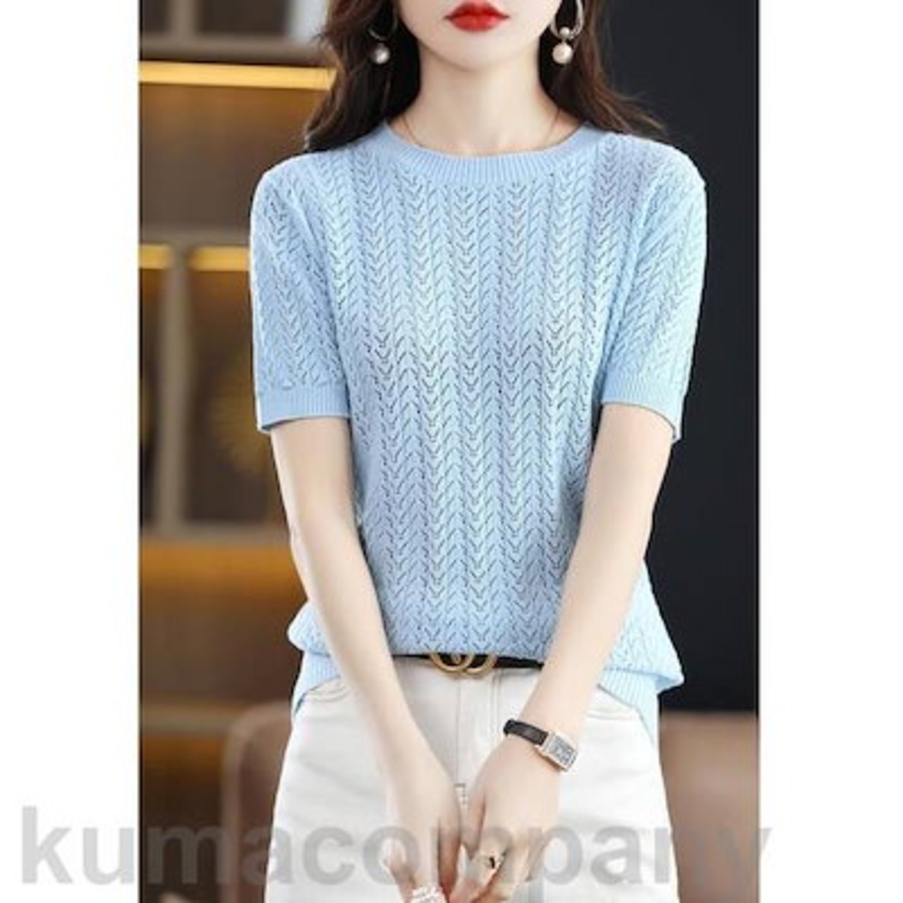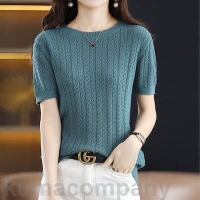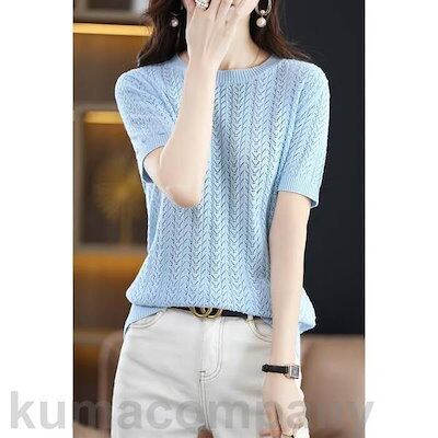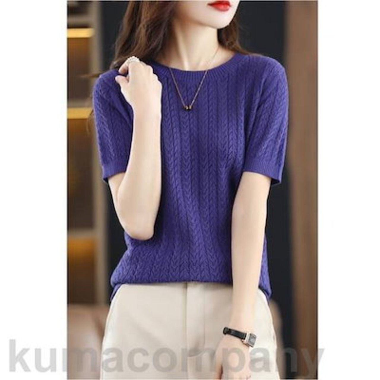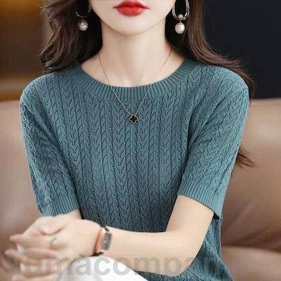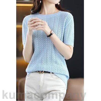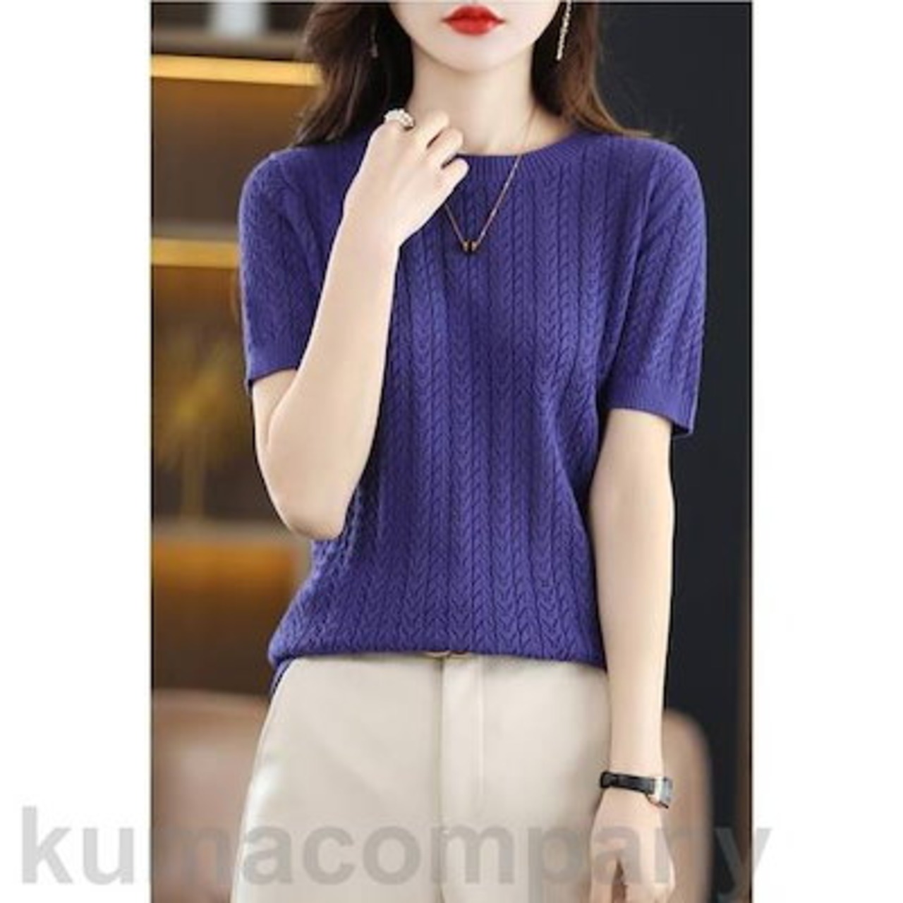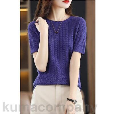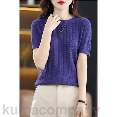トップス ニット カットソー サマーニット レースニット 透かし編み エレガント レディース きれいめ カジュアル おしゃれ 半袖 大人 可愛い フェミニン クルーネック シンプル パープル