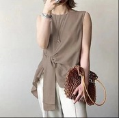 UVカット特集レディース ブラウス長袖ブラウス日焼け防止体型カバーチュニッククルーネックトップス日系ノースリーブ おしゃれ アシンメトリー トップス ノースリーブ Tシャツ 半袖 リネン素材トップスシ