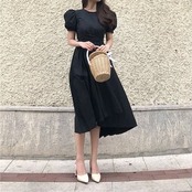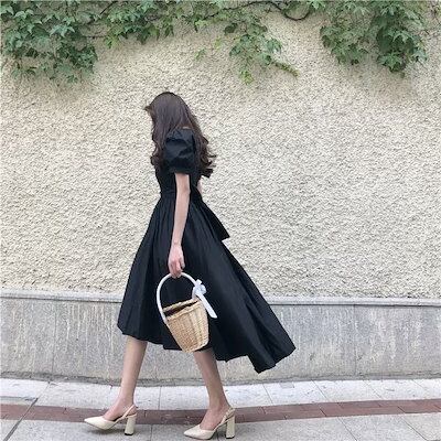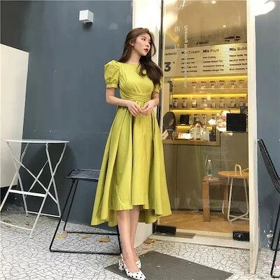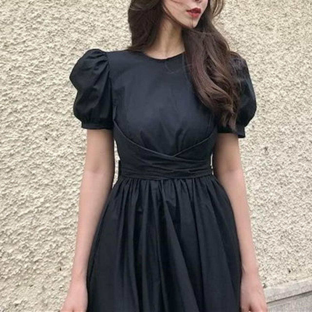 バックリボンワンピースフレアスカート4色ミモレ半袖レディース10203040夏トップスかわいいきれいめガーリー大人大人女子エレガントおしゃれデコルテ無地学生ガーリー大人韓国