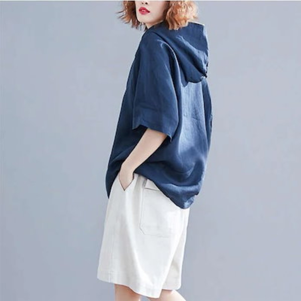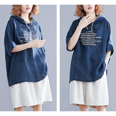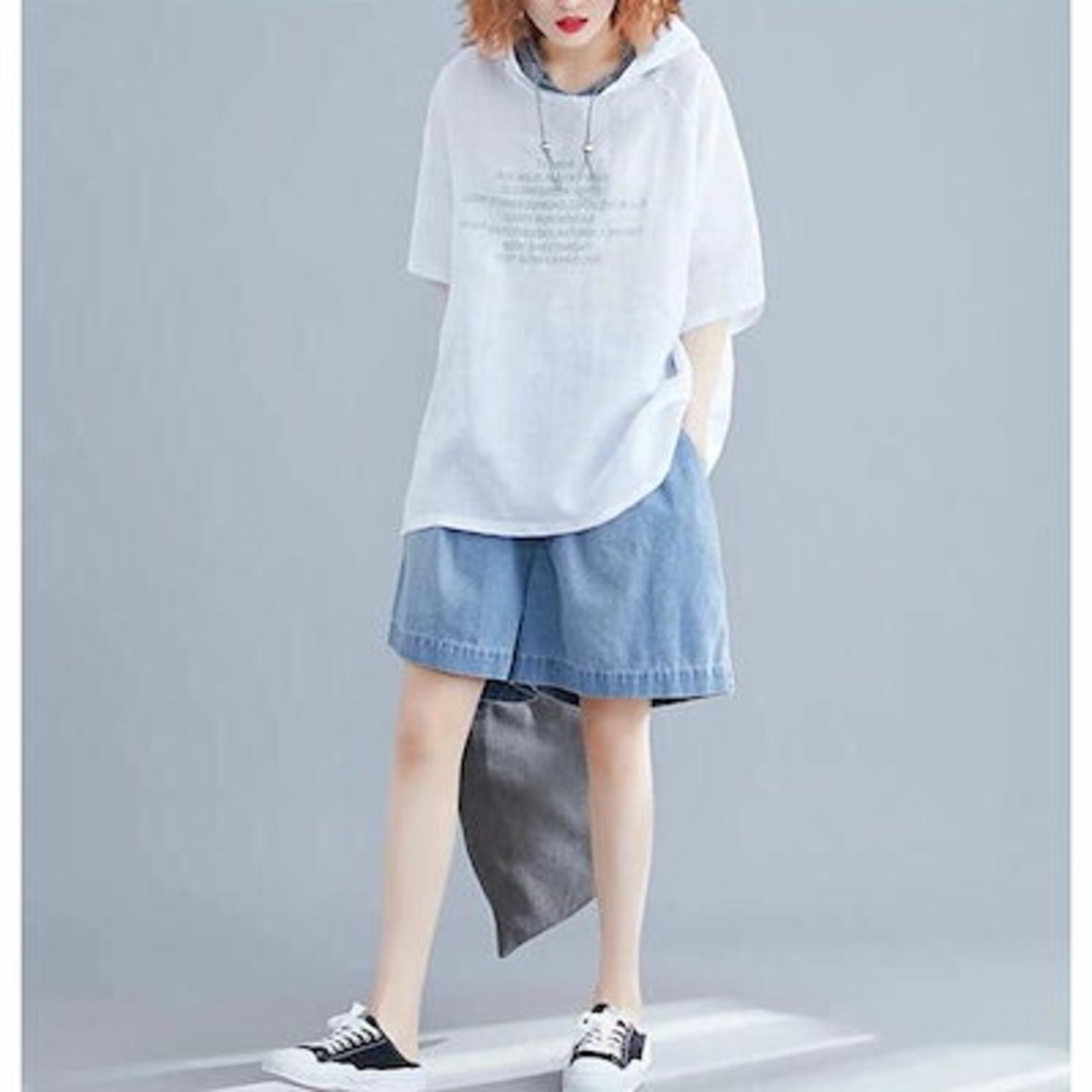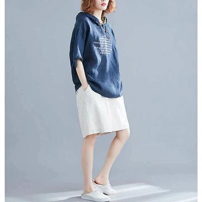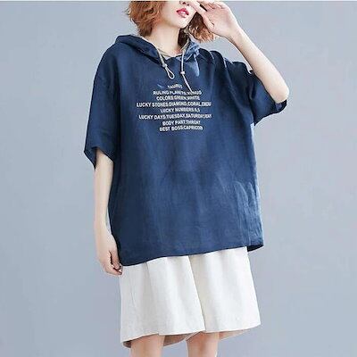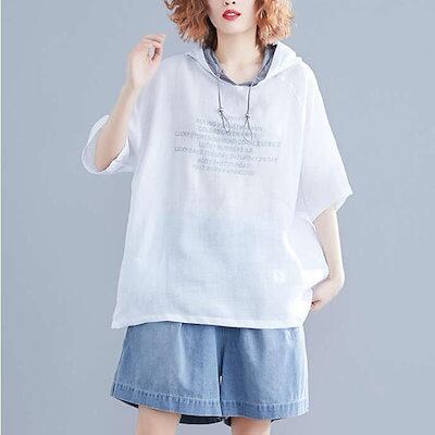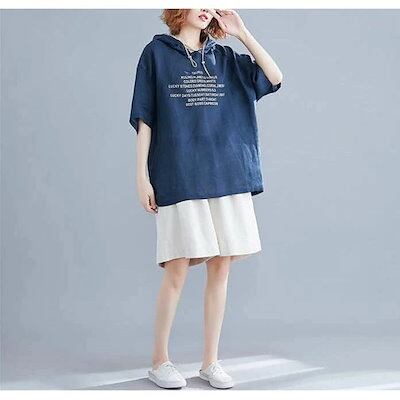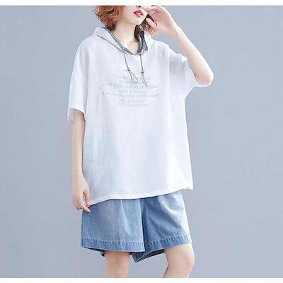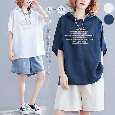 パーカー Tシャツ レディース スウェットパーカー フード付き レディース 半袖tシャツ ゆったり フードトレーナー 夏服 ストリート系 カットソー 大きいサイズ