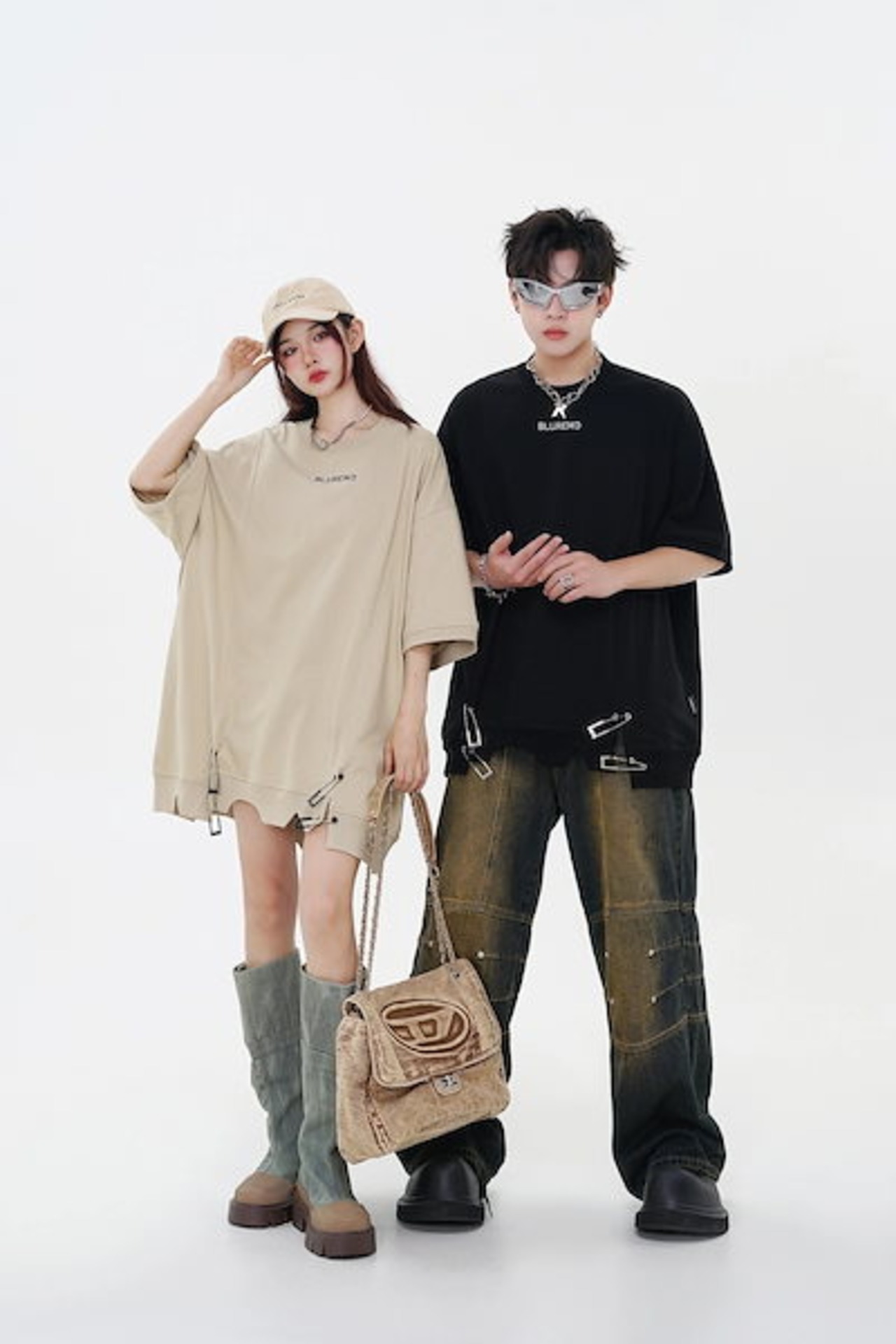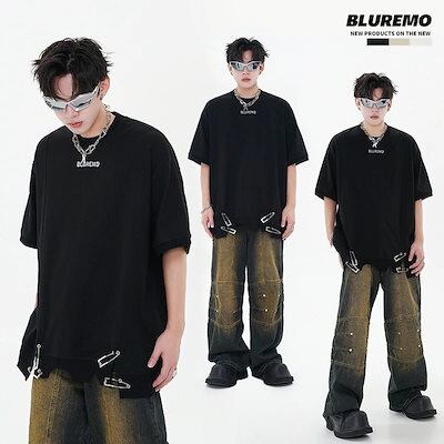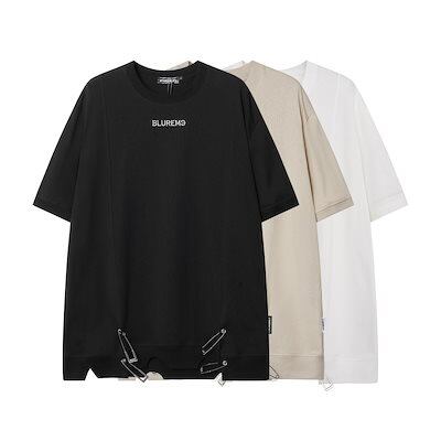 韓国ファッション レトロ おしゃれ パッチワーク 丸ネック Tシャツ ゆったり 怠惰風 半袖 質感 カジュアル 男女兼用 カップル レディース トップス