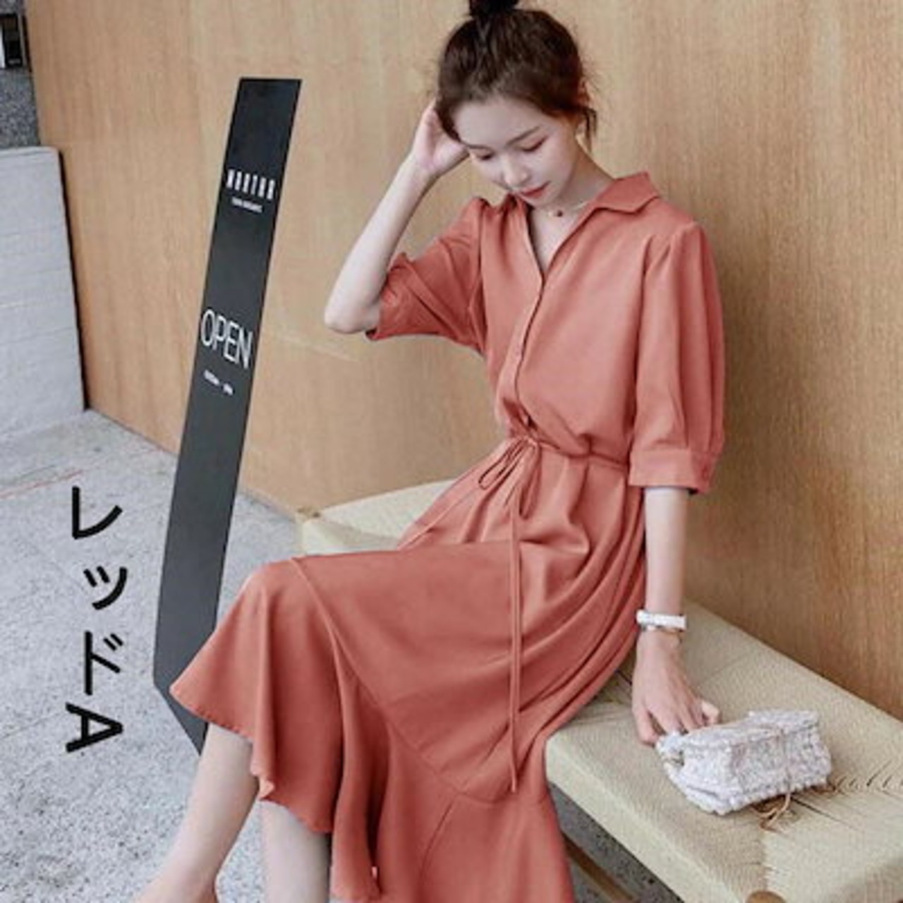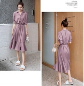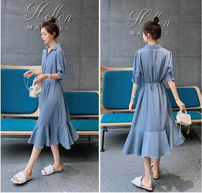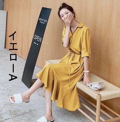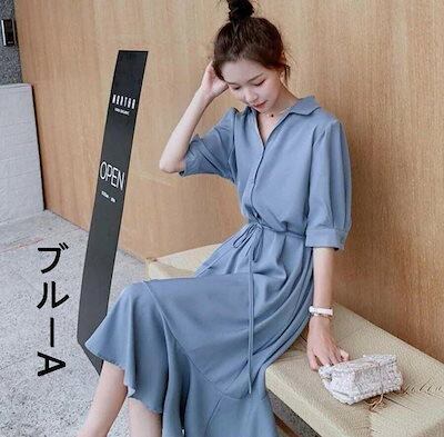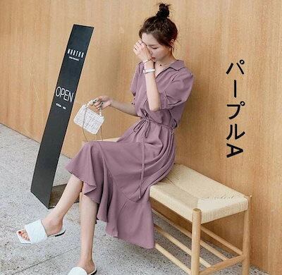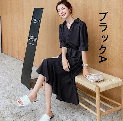 ワンピースレディースシャツワンピースAラインフレアワンピーストップスロングワンピースロングマキシ丈シンブル無地きれいめワンピ半袖大きいサイズゆったり通勤体型カバーカジュアルナチュラル