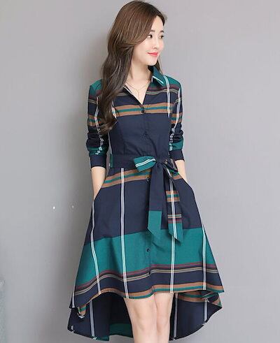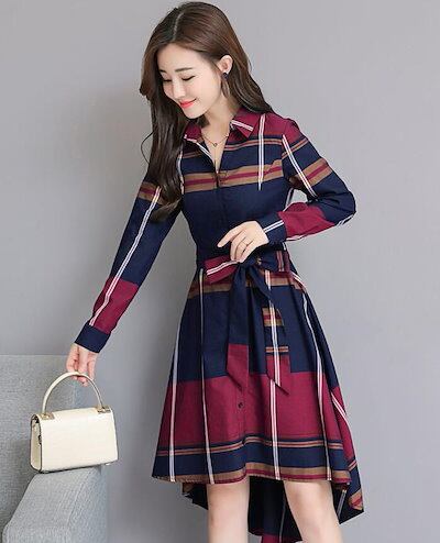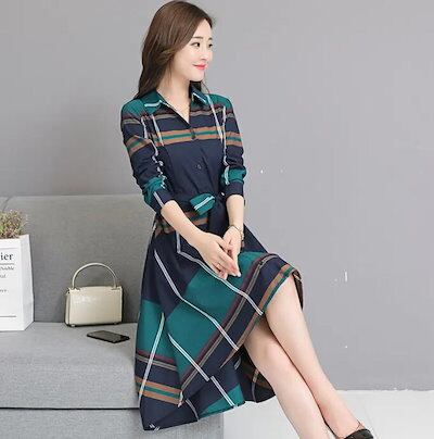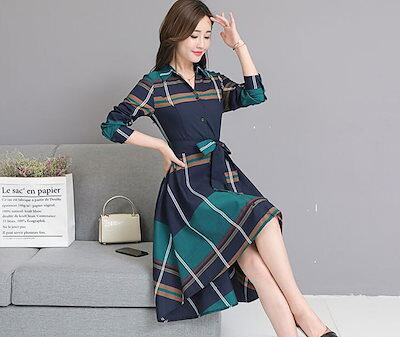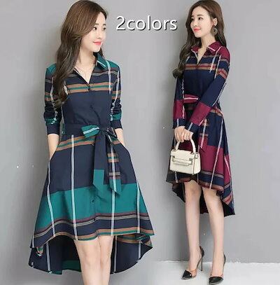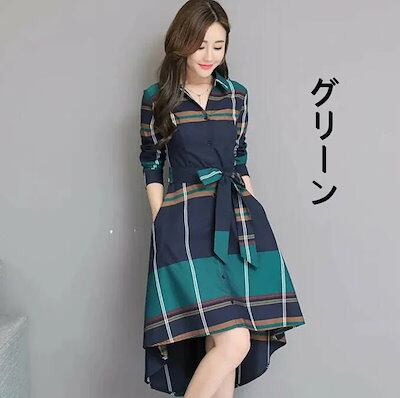 ワンピースレディースシャツワンピースAラインフレアワンピーストップスロングワンピースロングマキシ丈シンブルチェック柄きれいめワンピ半袖長袖大きいサイズゆったり通勤体型カバーカジュアルナチュラル