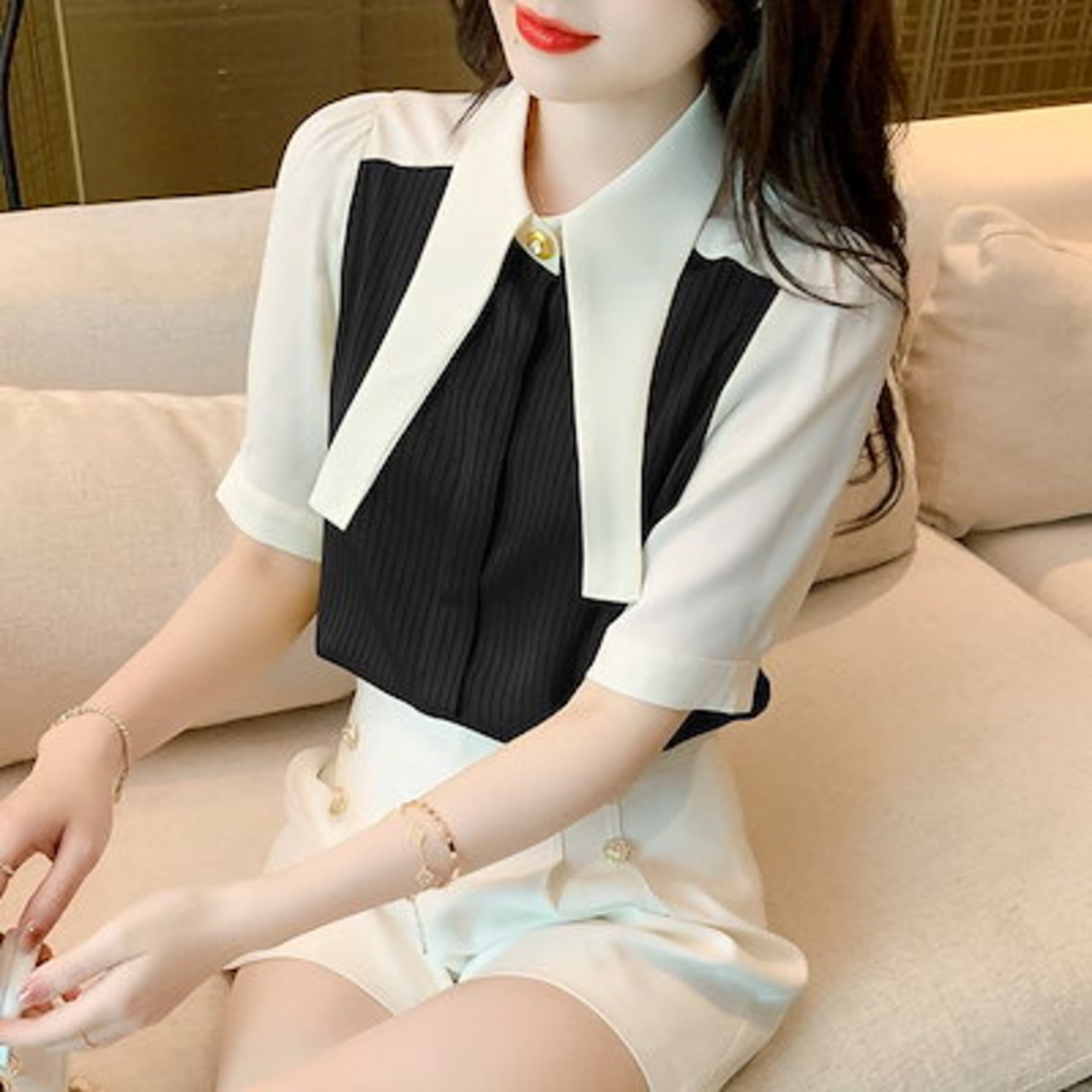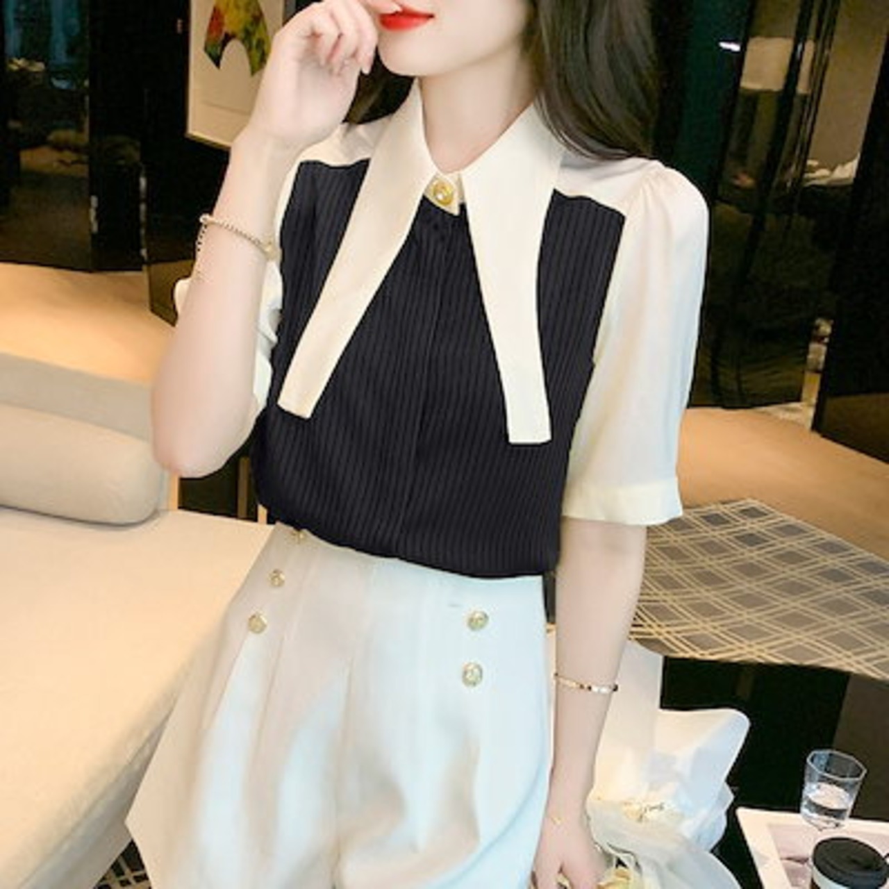 使える!シフォンブラウス今っぽシアーシャツ可愛いサテンシャツ職業ブラウス通勤トップス夏服レディース半袖韓国ファッションシフォンシャツ