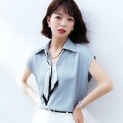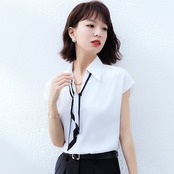 使える!シフォンブラウス今っぽシアーシャツ韓国ファッションビジネスシャツ半袖ワイシャツ夏服レディースサテントップスシフォン