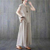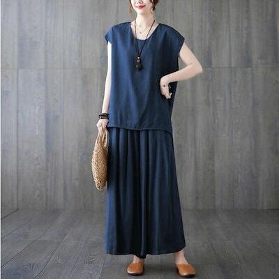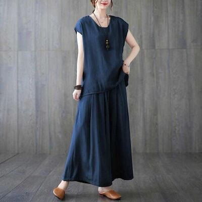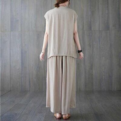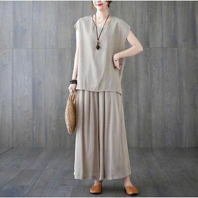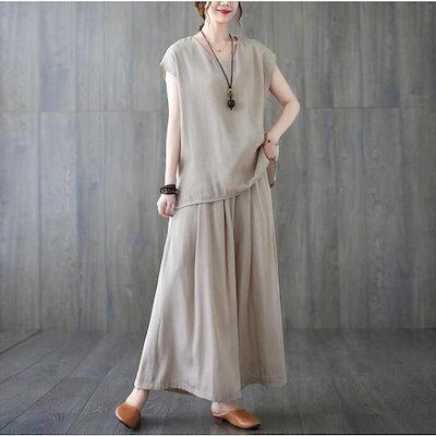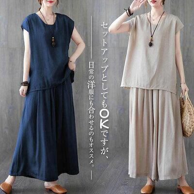 セットアップ レディースブラウス ワイドパンツ 半袖 夏 ガウチョパンツ カジュアル 40代 薄手 ひんやり 冷感 フレンチスリーブ ゆったりおしゃれ 着痩せ