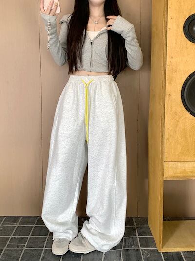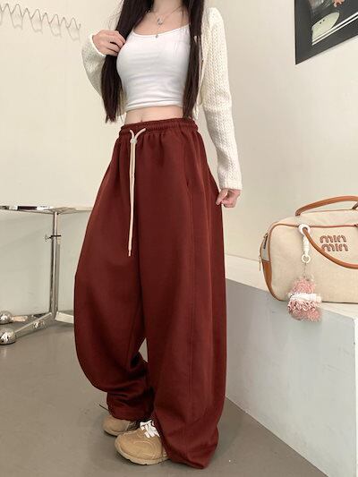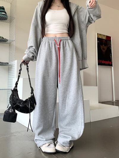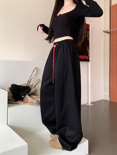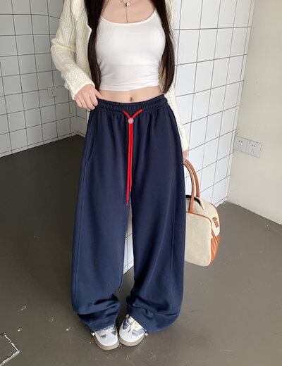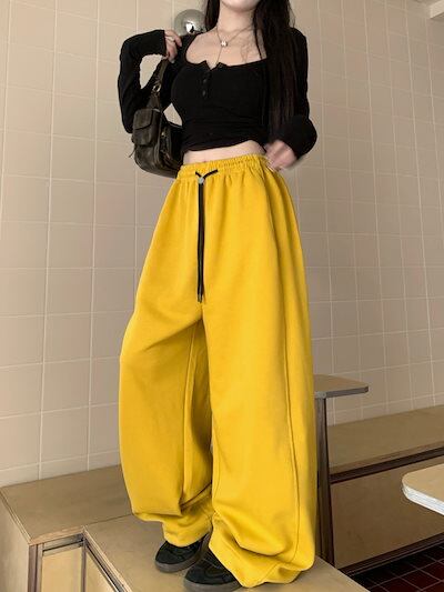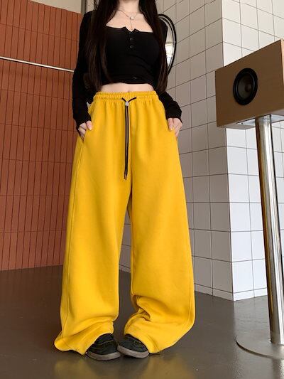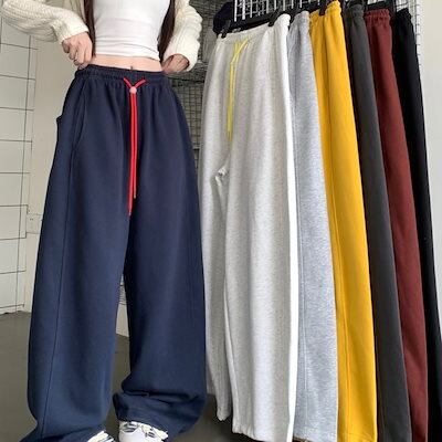 パンツ ロング丈 スウェット ワイド ストレート ウエストゴム ハイウエスト 美脚効果 脚長効果 細見え 秋 赤 白 黒 黄色 おしゃれ かわいい 韓国ファッション レディース お出かけ