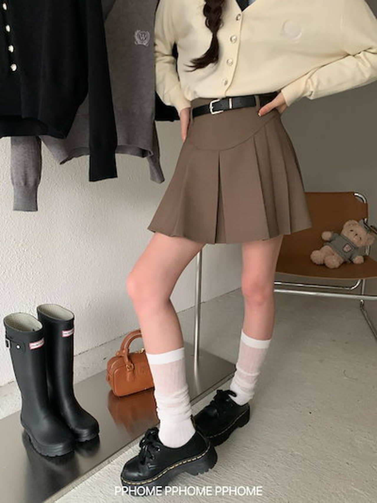 2024秋冬 スカート ミニ丈 ハイウエストベルト付き 高校生 学生 脚長効果 美脚効果 細見え かわいい風 おしゃれ キュート フレンチ 甘め カジュアル春黒白韓国系ファッションレディースお出かけ