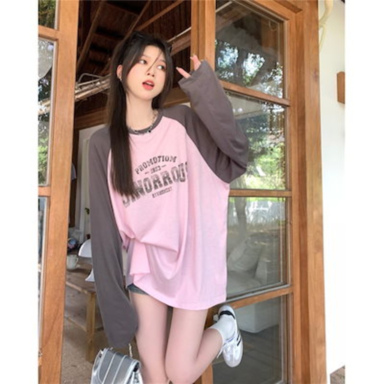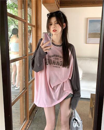 2024春夏 トップス Tシャツ ラグラン 長袖 丈長め ラウンドネックシルエットゆったり リラックス シンプル かわいい カジュアル韓国ファッションスリーブサイズお出かけT2024春夏 トップス T