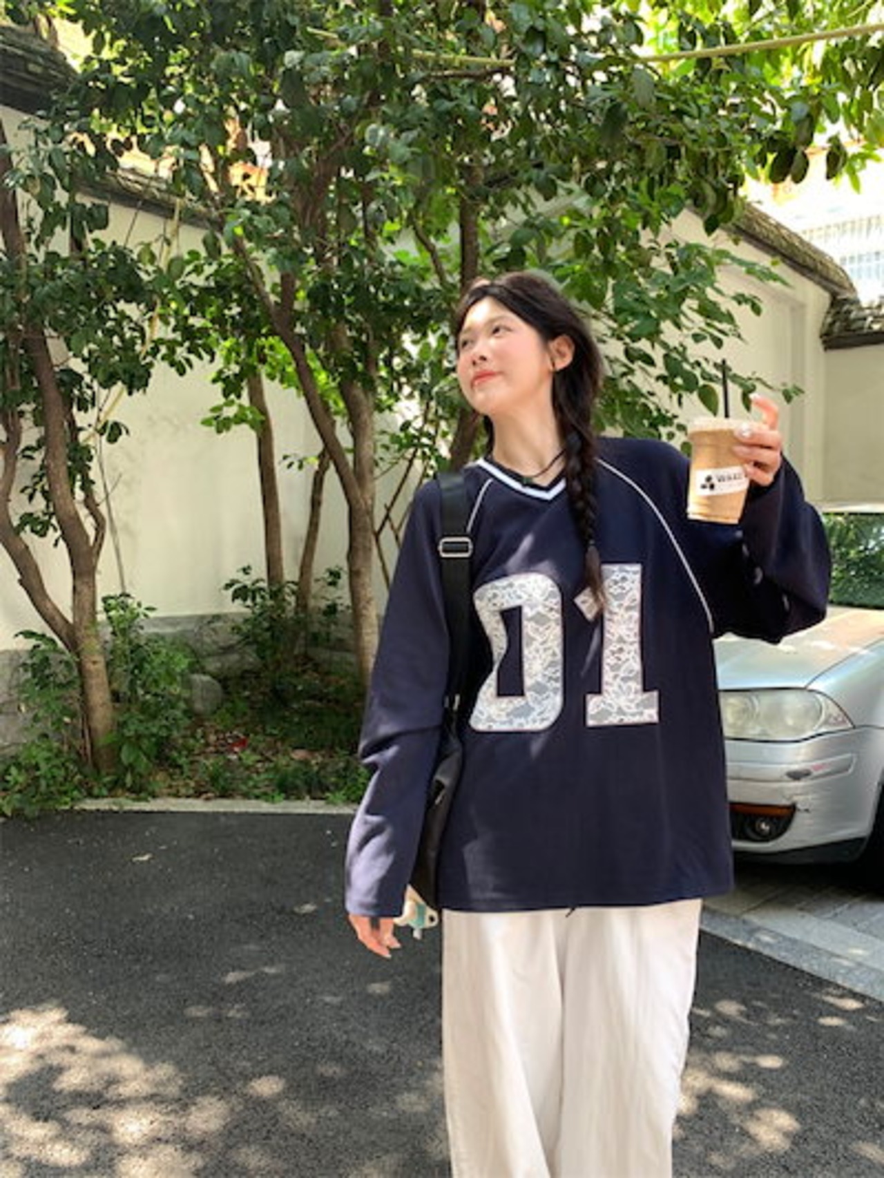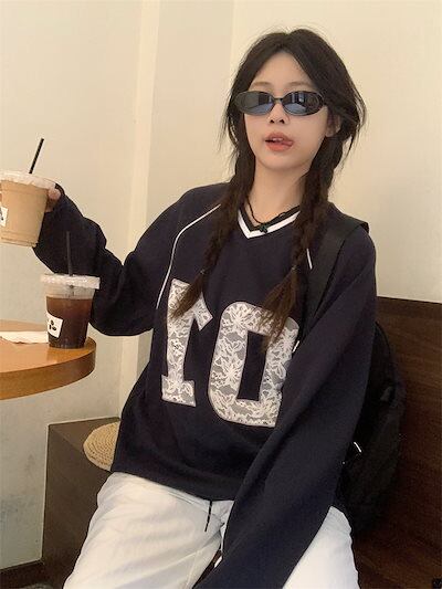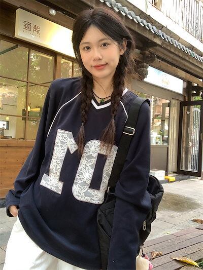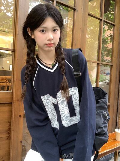 2024 秋冬 トレンド トップス 甘辛MIX長袖 かわいいTシャツレディース韓国風ロゴ衣装ルーズゆったりカジュアルおしゃれサイズスリーブシルエットネックファッション系サイドシャツフット春
