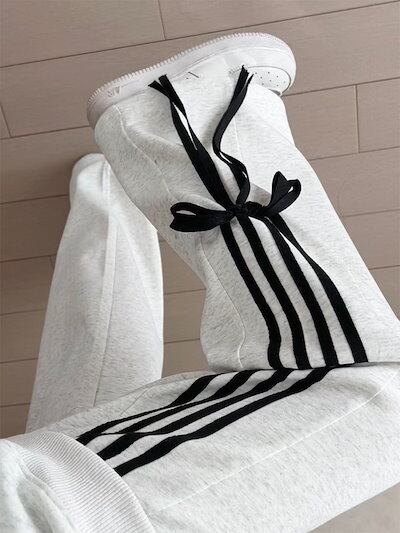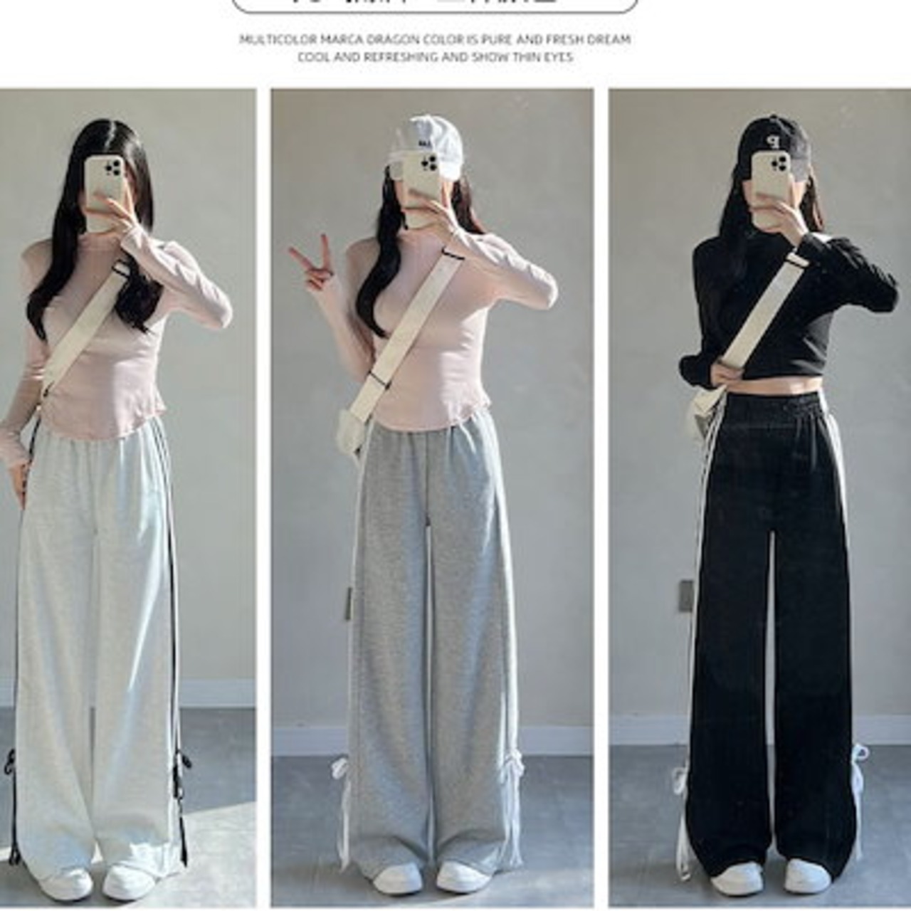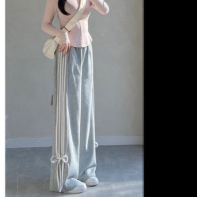 2024秋冬 パンツロング丈ストレート ストライプウエストゴム ハイウエストゆったり 脚長効果美脚効果細見え春カジュアル 黒韓国系ファッションレディースサイドお出かけおしゃれ かわいい衣装 トラック