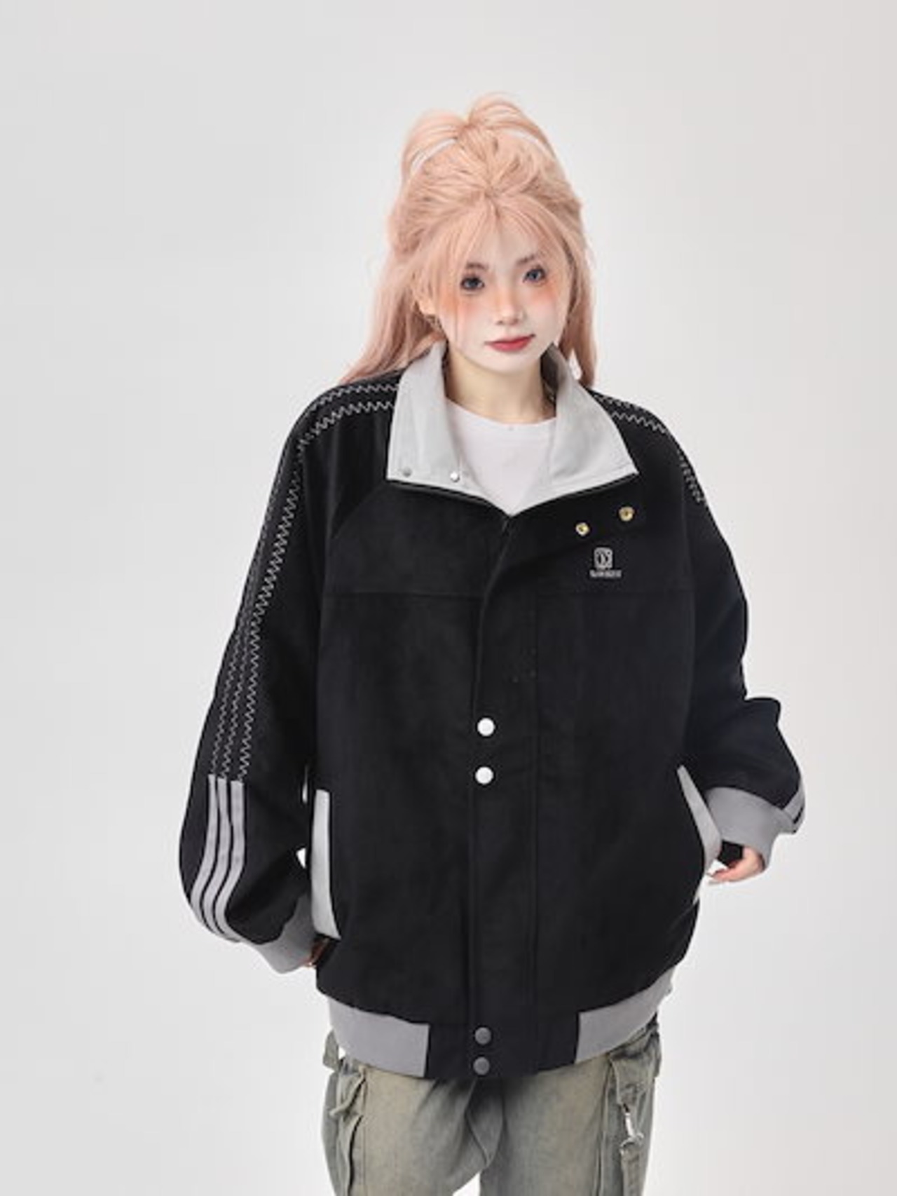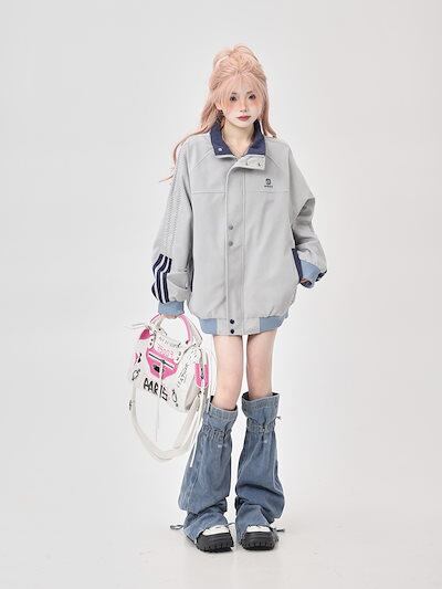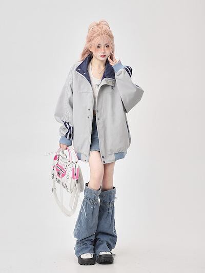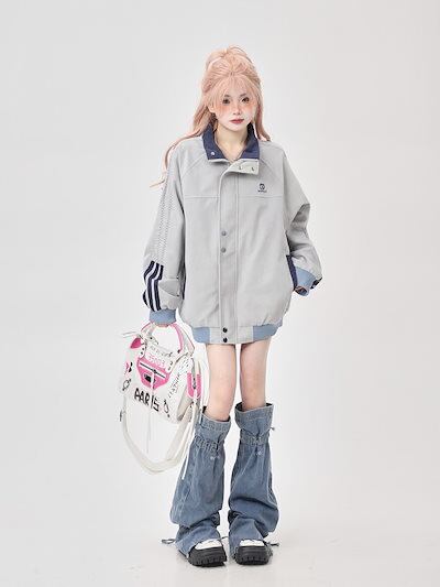 2024 秋冬 韓国 かわいい レディース ハイネックスタンドネックアウターブルー ブラックブルゾンお出かけ長袖セクシーシルエットトップスサイド冬カジュアルファッション系サイズお出かけフル丈トラック