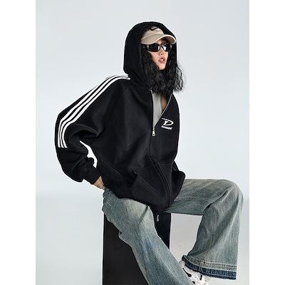 今年 秋冬 韓国 かわいい レディース フード付きアウター ブルゾン長袖シルエットトップスサイド冬カジュアルファッション系サイズお出かけダブル丈トラック