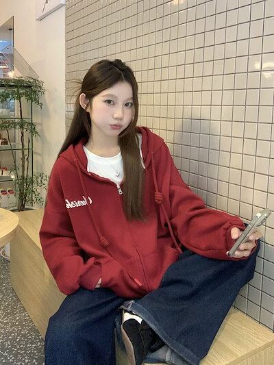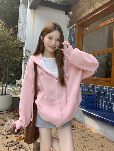 5色 今年 秋冬 韓国 かわいい レディース フード付きアウターフーディーブルゾン黑白長袖シルエットトップスサイド冬カジュアルファッション系サイズお出かけフル丈トラック高校生 通学大学生
