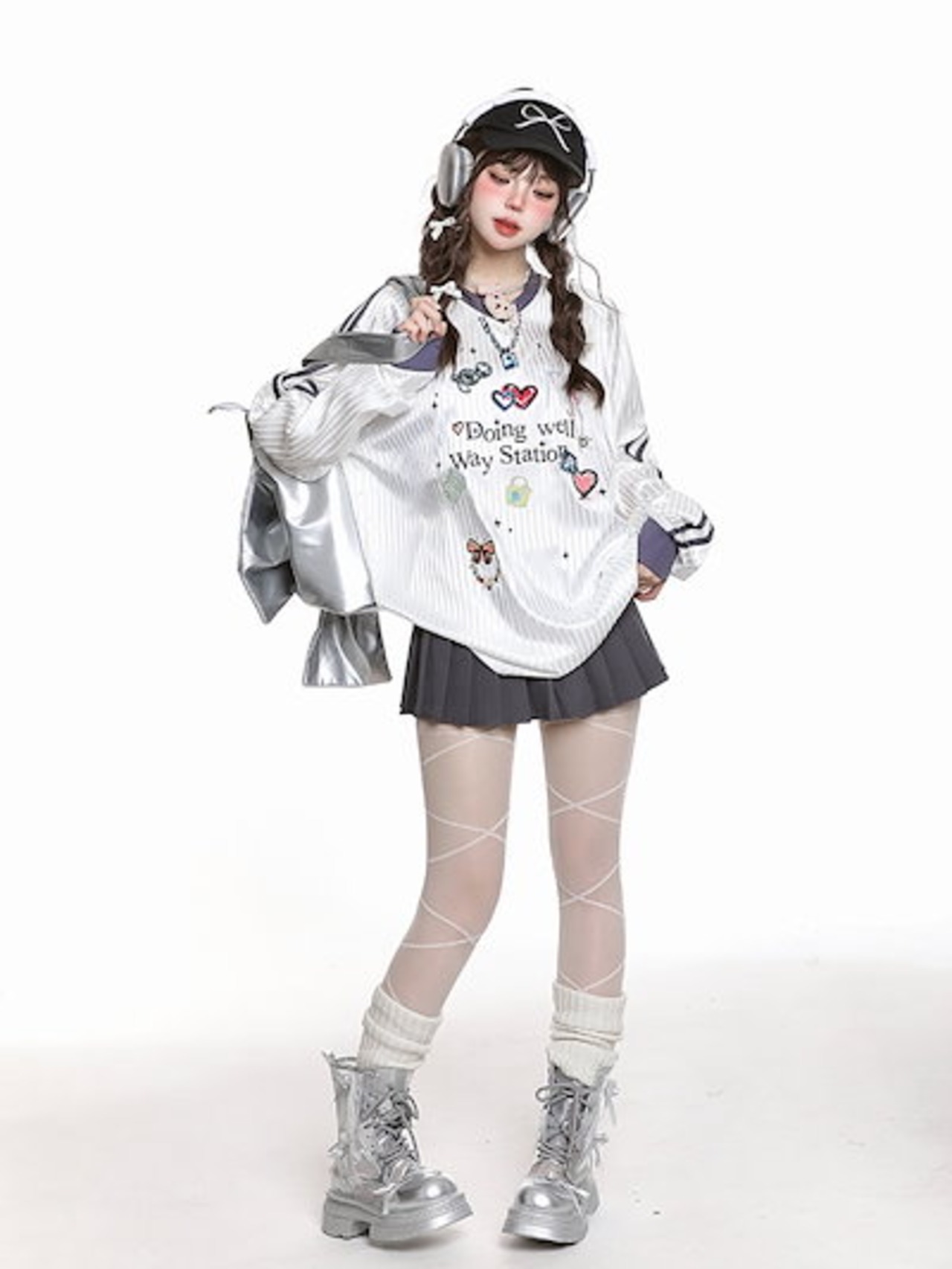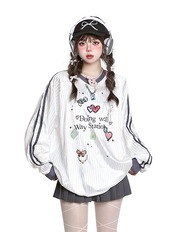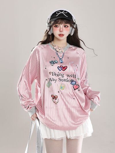 2024 秋冬 トレンド トップスバイカラー甘辛MIX長袖 かわいいTシャツレディース韓国風ロゴ衣装ルーズゆったりカジュアルおしゃれサイズスリーブシルエットファッション系サイドシャツフットスウエット春