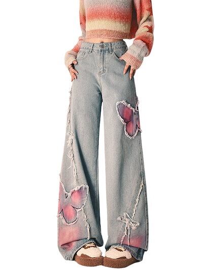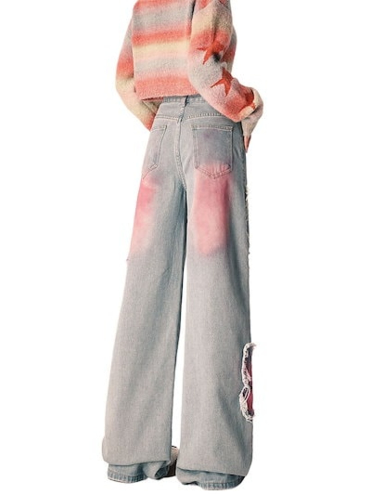 2024秋冬 デニムパンツ ボトムス ジーンズ 韓国ファッション系スタイル ゆるダボ ジーンズ シルエット加工ゆったり レディース カジュアル 春夏 メンズライク