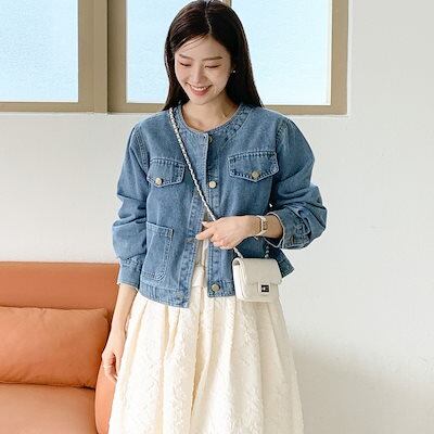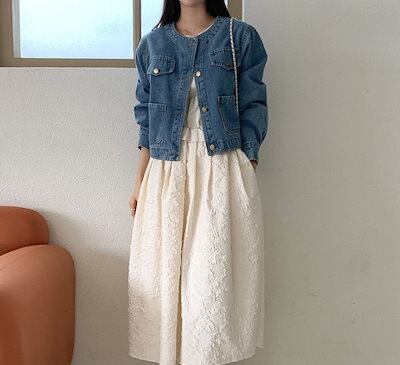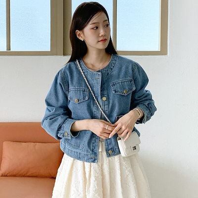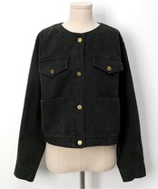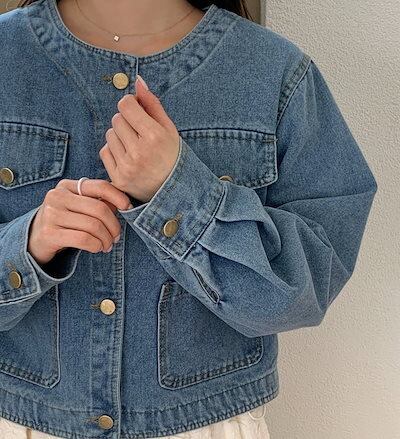 2024秋冬アウター ジャケット デニム生地 長袖 ボタン ラウンドネック 秋 黒 青 おしゃれ かわいい 韓国ファッション レディース お出かけ