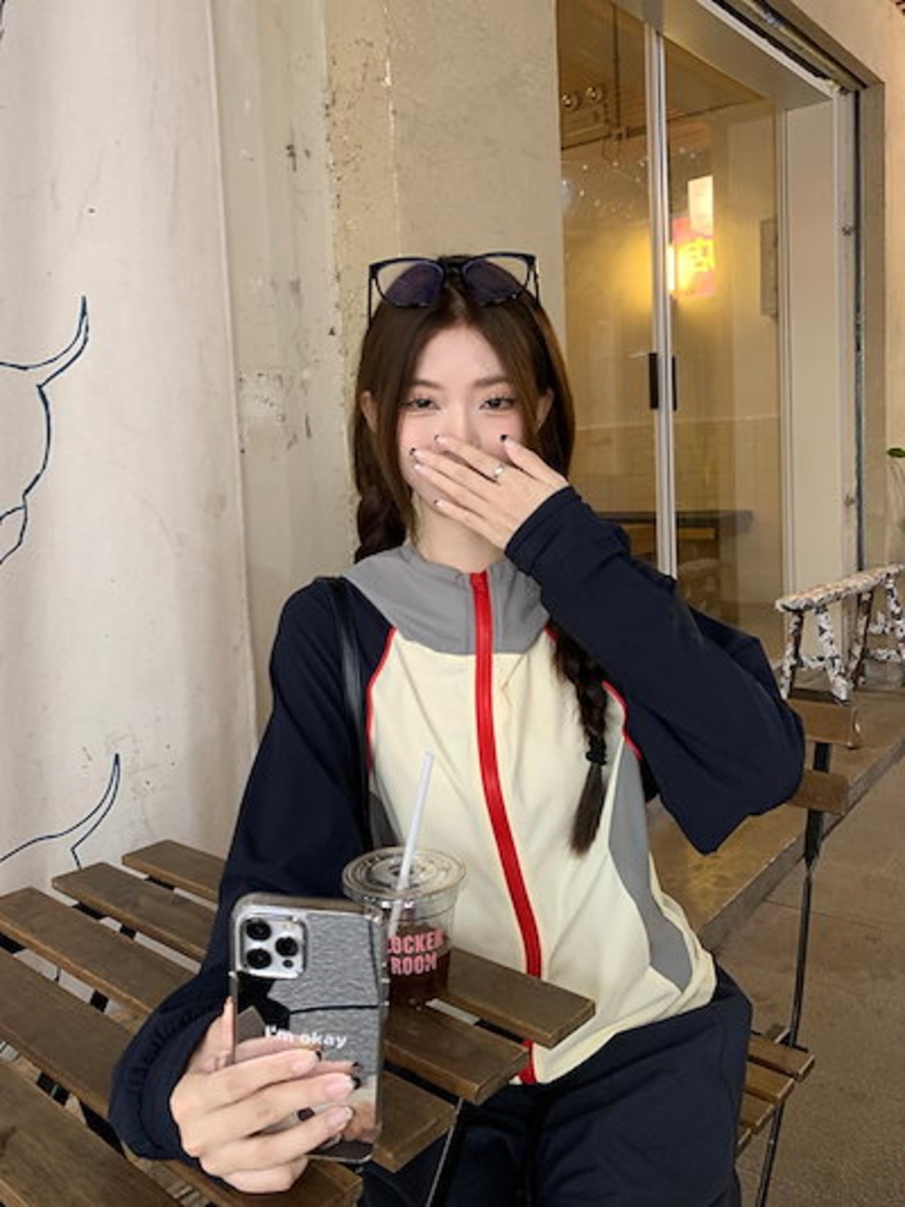 2024秋冬アウター パーカー ジップ チャック フード付き コントラスト 秋 おしゃれ かわいい 韓国ファッション レディース お出かけ