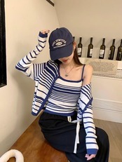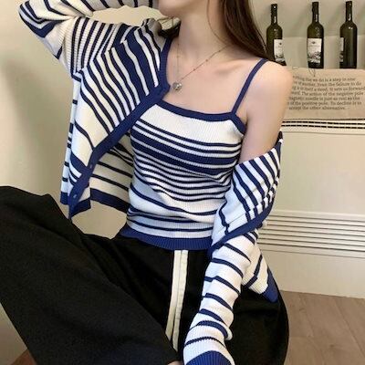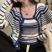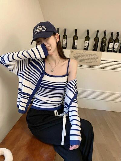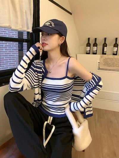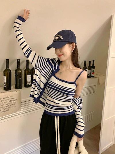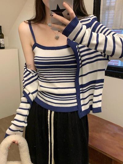 2024秋冬トップス ニット カーディガン 羽織り 薄手 長袖 ボーダー キャミソール 秋 おしゃれ かわいい 韓国ファッション レディース お出かけ