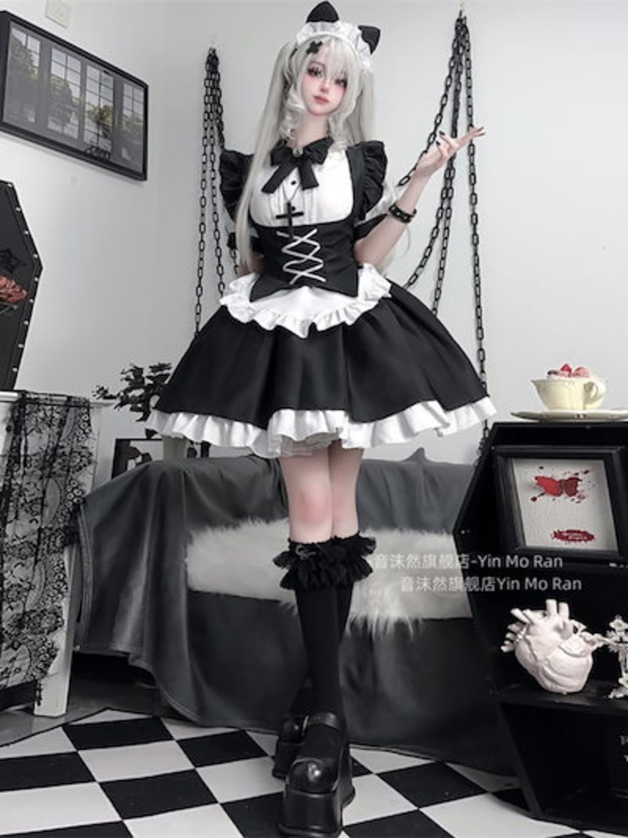 今年 短?期 4点 セットアップ ワンピース ハロウィン 大人 仮装 コスチューム服 衣装 学園祭 文化祭 ファッション系 レディース セクシー型 ブラック かわいい