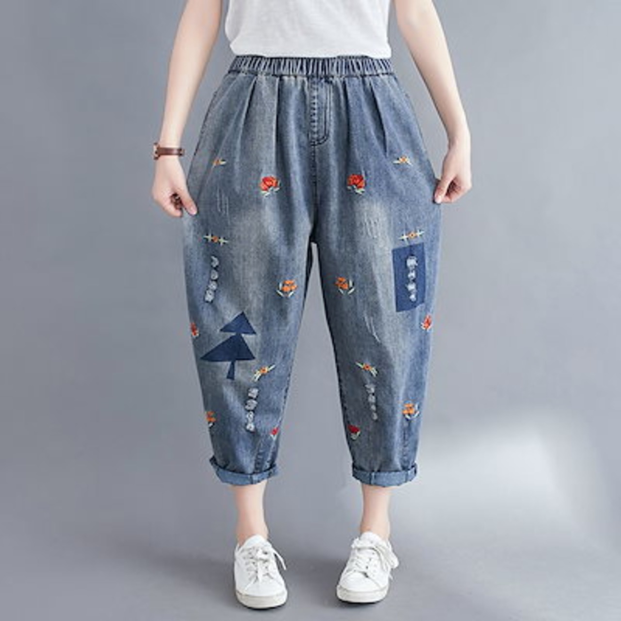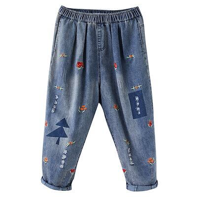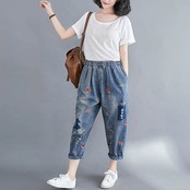 デニムボトムス大きいサイズダメージジーンズ刺繍ハーレムズボンが痩せているカジュアルな九分パンツジーンズ1