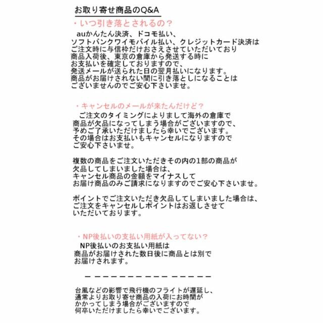 サイズ交換、お色交換などの返品、交換は行っておりませんので十分にお確かめの上、ご購入お願い致します。