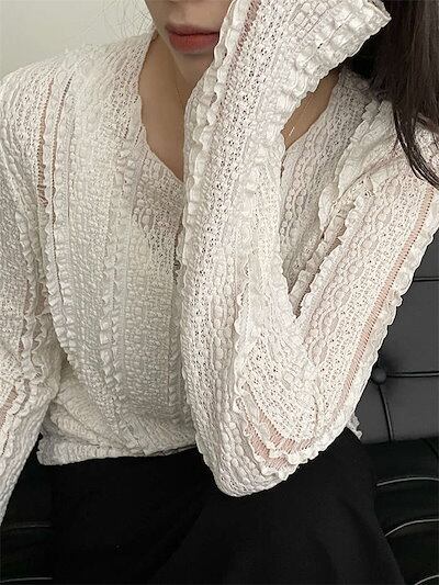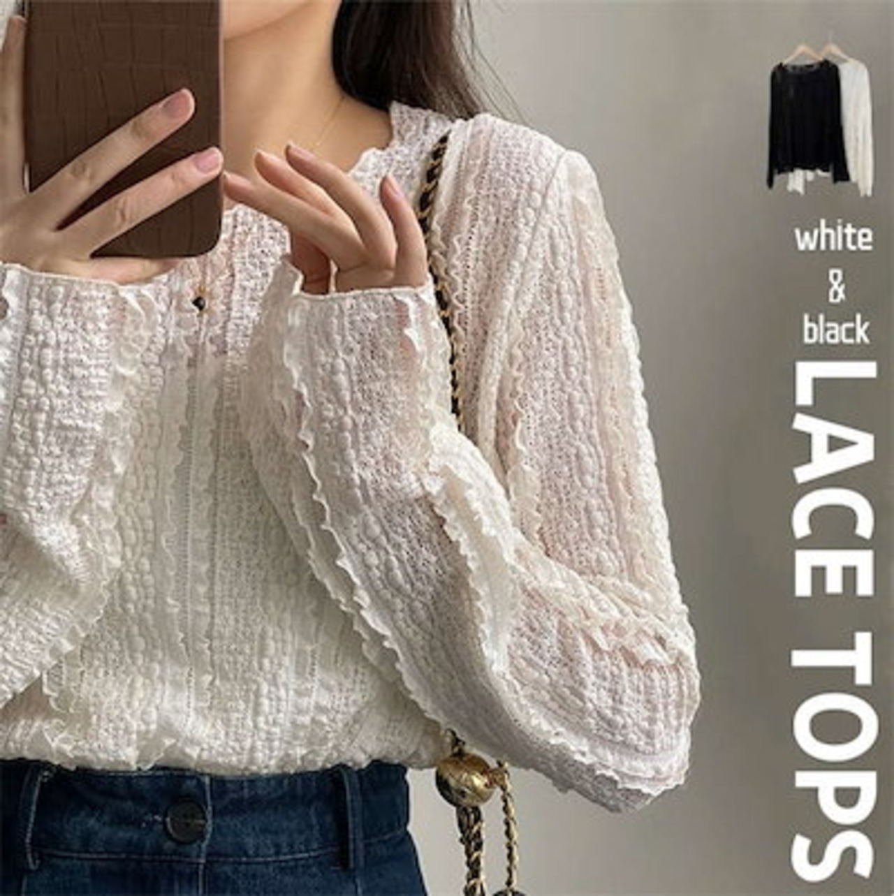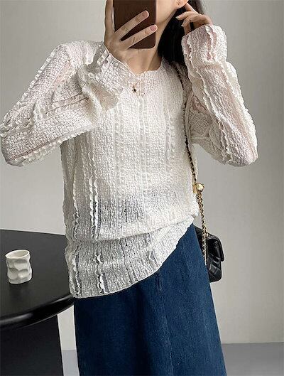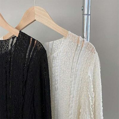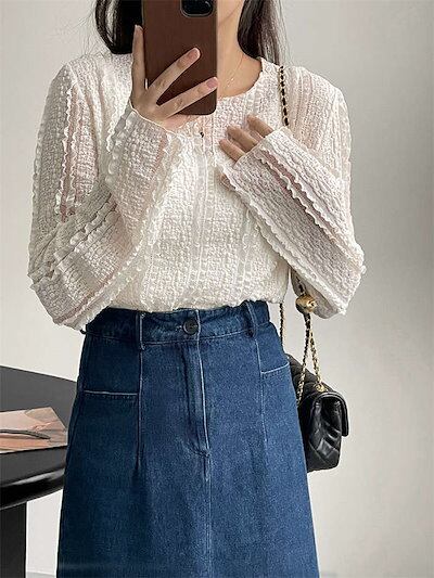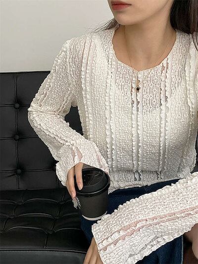 カットソー レースカットソー レディース トップス インナー 長袖インナー 総レース きれいめ スーツインナー ロングTシャツ ロンT レース クルーネック Uネック 長袖 重ね着 レイヤード 小顔