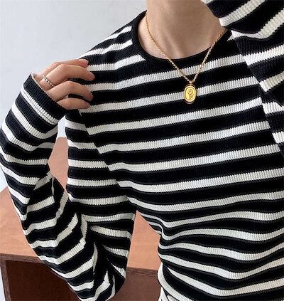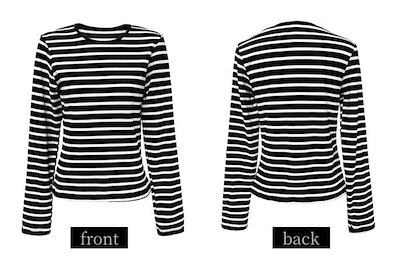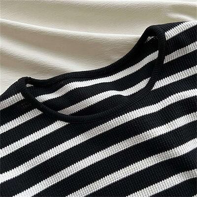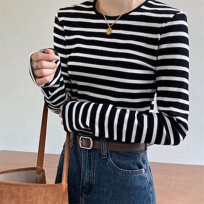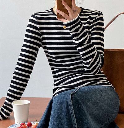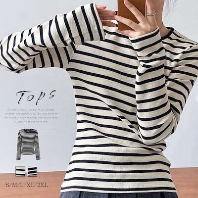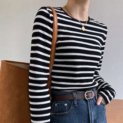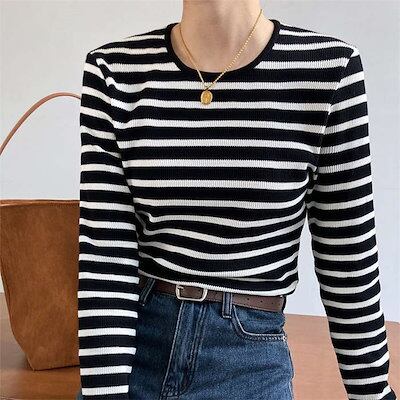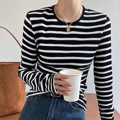 カットソー レディース トップス インナー スーツインナー 長袖tシャツ Tシャツ ロンT 綿 コットン ボーダー柄 ボーダー 長袖 重ね着 レイヤード クルーネック 丸首 おしゃれ 大人 伸縮性 素