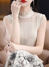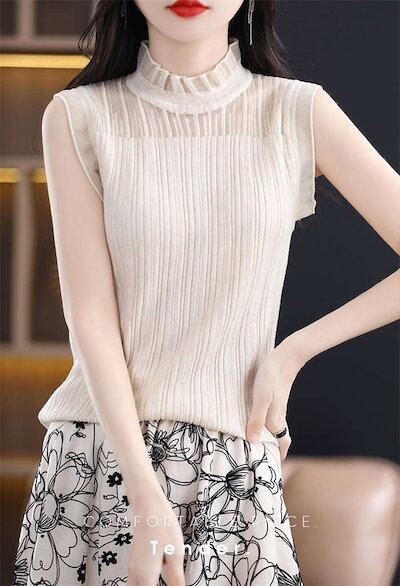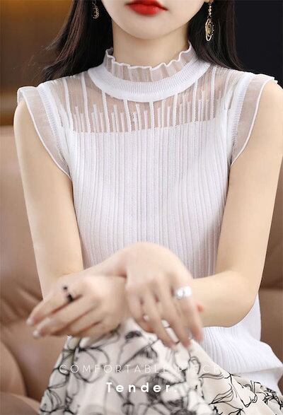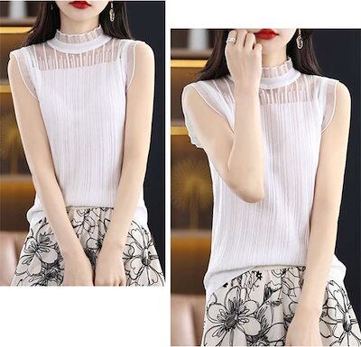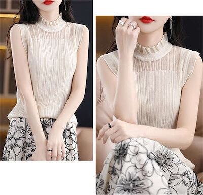 インナー ハイネック ノースリーブ 薄手 夏 カットソー トップス レース レディース タンクトップ 大きいサイズ ノースリーブカットソー スーツインナー ハイネックインナー 肌着 下着 洗える 重ね