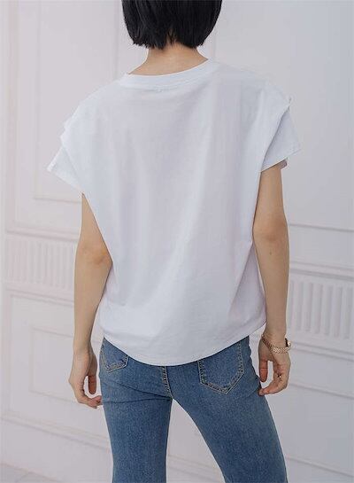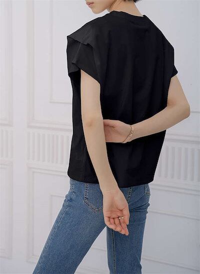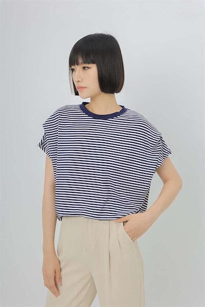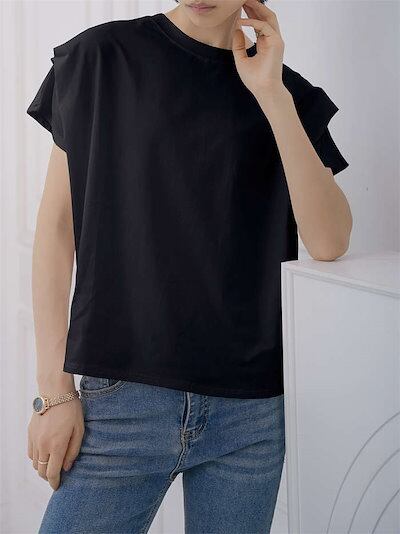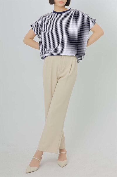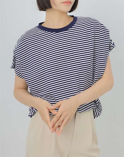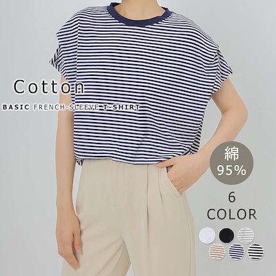Tシャツ レディース カットソー 半袖 コットン 綿 フレンチスリーブ tシャツ トップス インナー プルオーバー スーツインナー きれいめ Uネック クルーネック 無地 ボーダー柄 ストライブ ロゴ