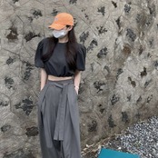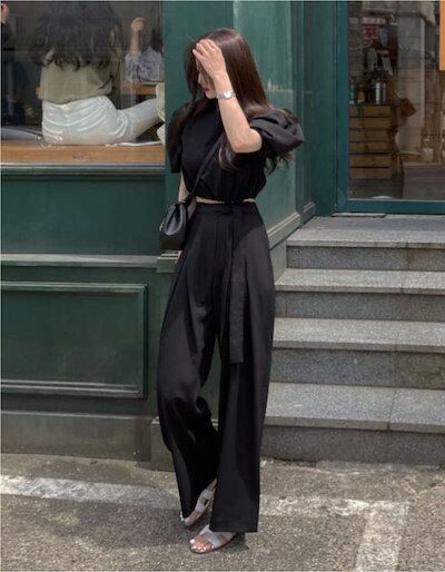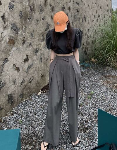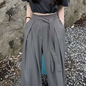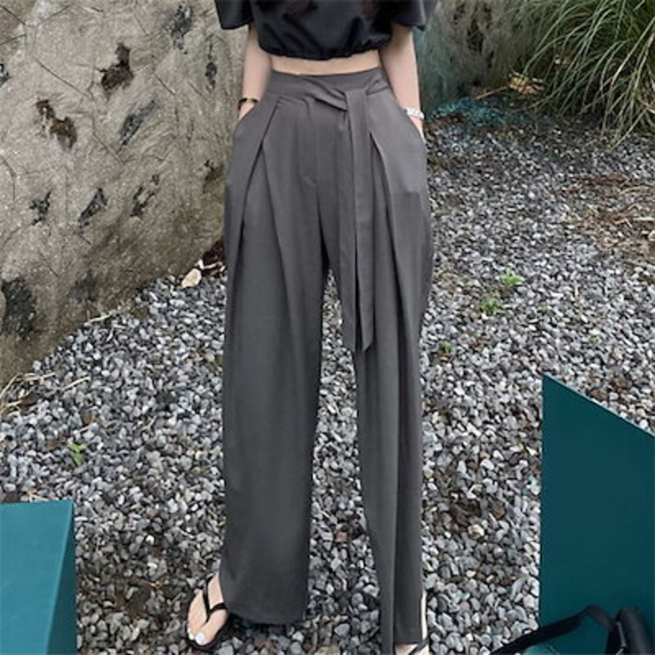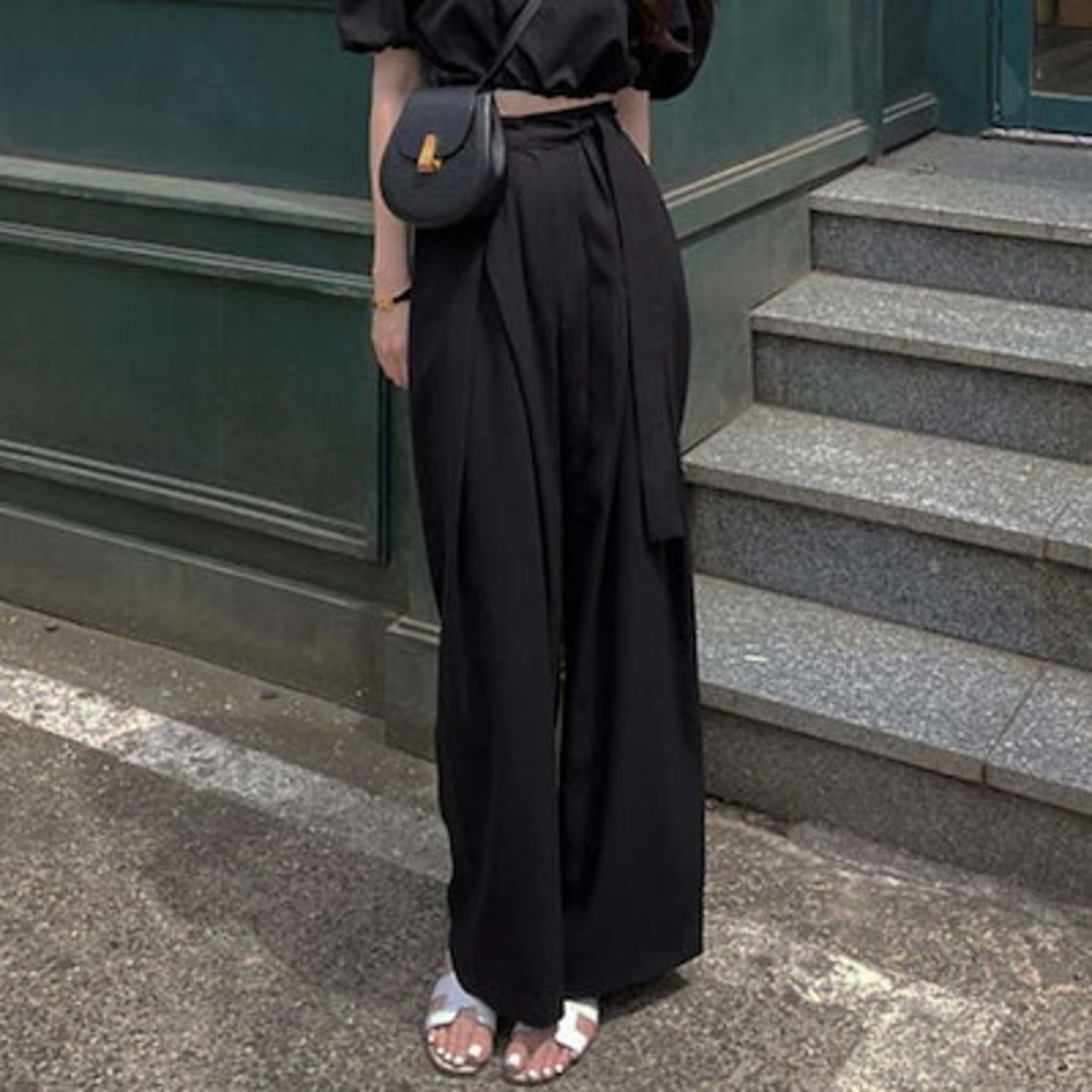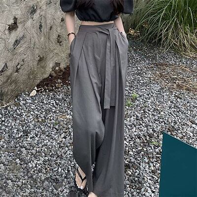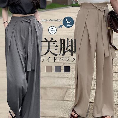 ワイドパンツ ワイド レディース タックパンツ ガウチョパンツ 春 夏 ロング丈 イージーパンツ ボトムス パンツスーツ アシンメトリー ウェストリボン リボンベルト 楽ちん 涼感 すっきり 個性的