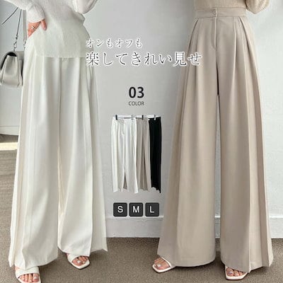 ワイドパンツ タックパンツ レディース ハイウエスト 春 夏 秋 マキシ丈 ロング丈 スラックス 無地 ストレートパンツ 長ズボン ロングパンツ イージーパンツ スーツパンツ 体型カバー お洒落 通勤