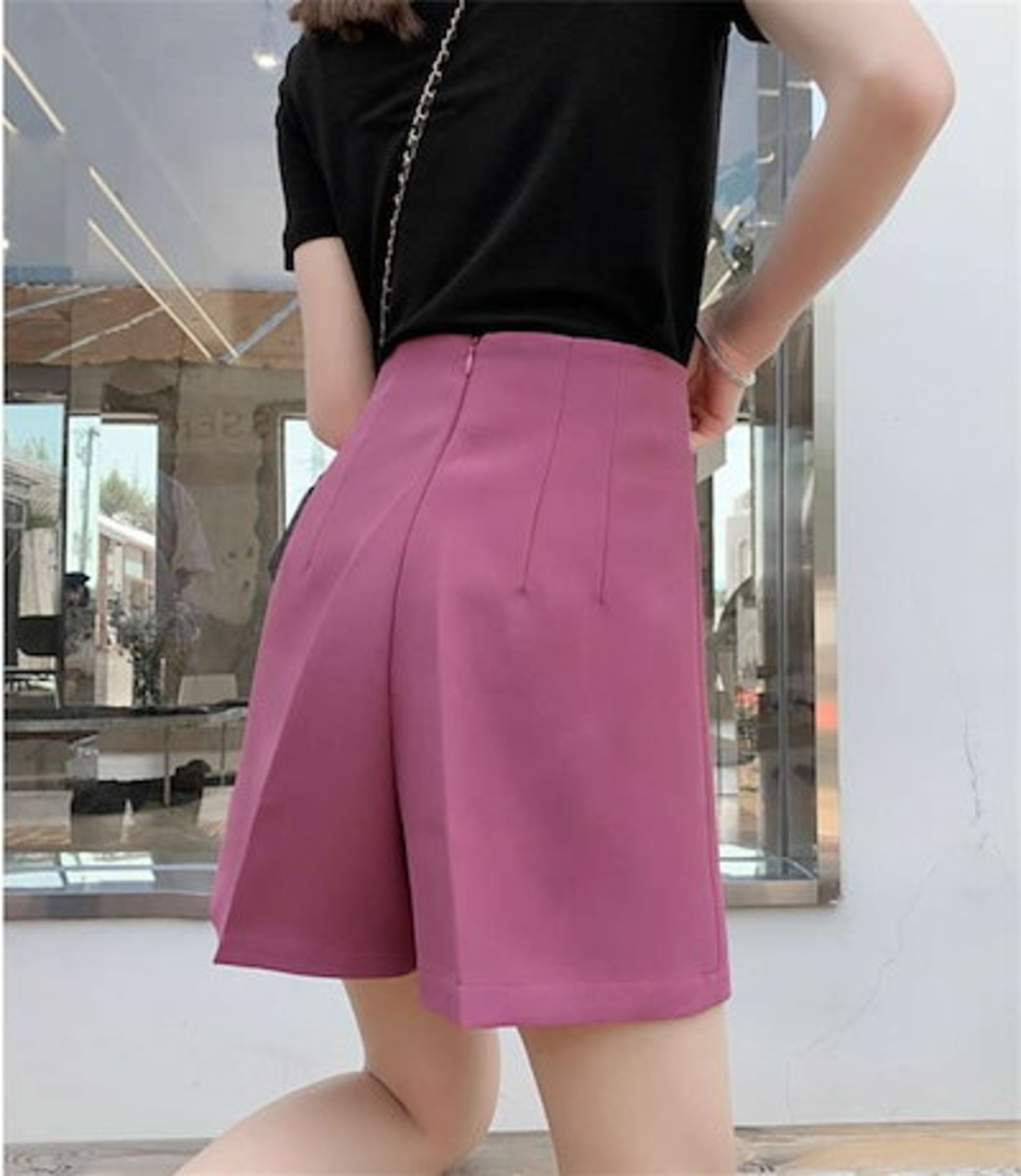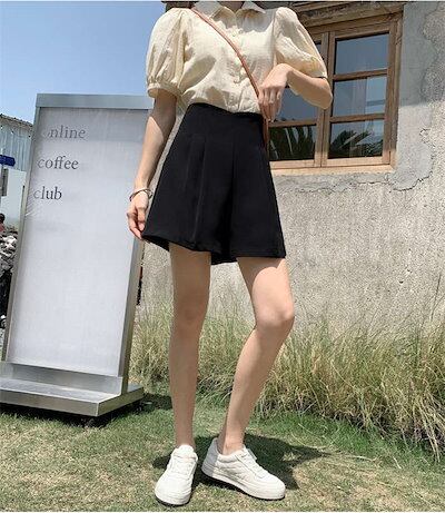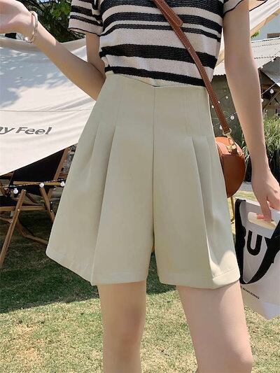 ショートパンツ ハーフパンツ レディース サマーパンツ ファスナー スーツパンツ 五分丈 美脚 春 夏 ハイウエスト スタイルアップ タック 体型カバー ボトムス デート 女子会 ベーシック お出かけ