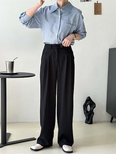 ワイドパンツ レディース ワイド ボトムス パンツ タックパンツ 無地 秋 冬 春 シンプル ガウチョ ハイウエスト スラックス ロング ズボン スーツ オフィス カジュアル ワイド タック ゆったり
