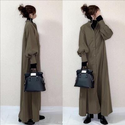 大人気 初秋 新作 レディース ワンピース ロングワンピース 長袖ワンピース Vネック無地気質百掛け 体型カバー 着痩せ 大きいサイズ レディースワンピース