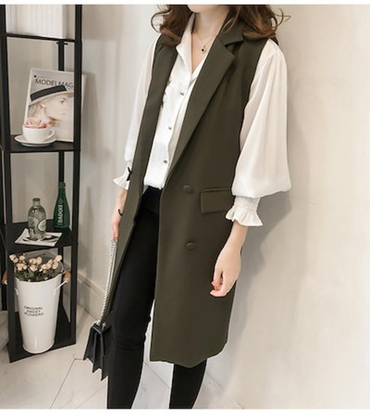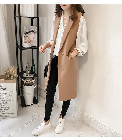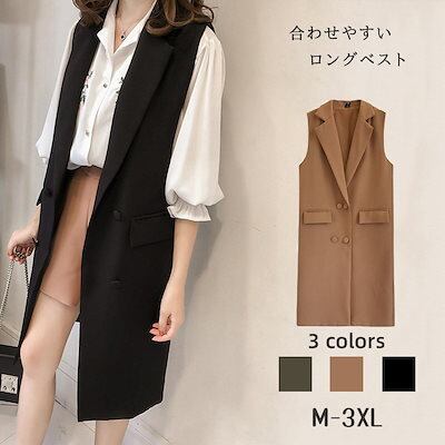 初春 アウター 夏 トレンチコート ジャケッ ベスト韓国ファッションノースリーブ ロング丈ベスト 通勤 百掛けスーツベスト