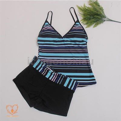 ストライプ Vネック お洒落 ショートパンツ ハイウエスト タンクスーツ ビキニママ水着 セパレート 大きいサイズ セット 体型カバー 水着レディース